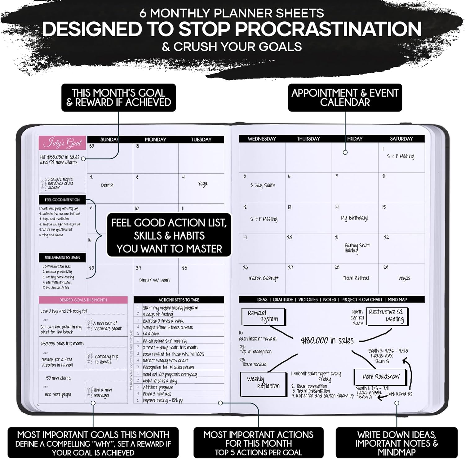 - SELF CARE JOURNAL - This deluxe daily planner and self-care journal comes in A5 size (5.8 x 8.3 inches). The life planner comprises 264 pages of thick 100 gsm paper, including 90 daily planning sheets, guiding you on how to become the best possible version of yourself on a mental, physical, and interpersonal level. It's a unique diary based on leading scientific studies proven to increase productivity and happiness. The journal features an out-foldable vision board to help you stay focused, morning and evening power questions, mind maps, reflection pages, habit trackers, a back pocket, and much more than any other planner on the market!