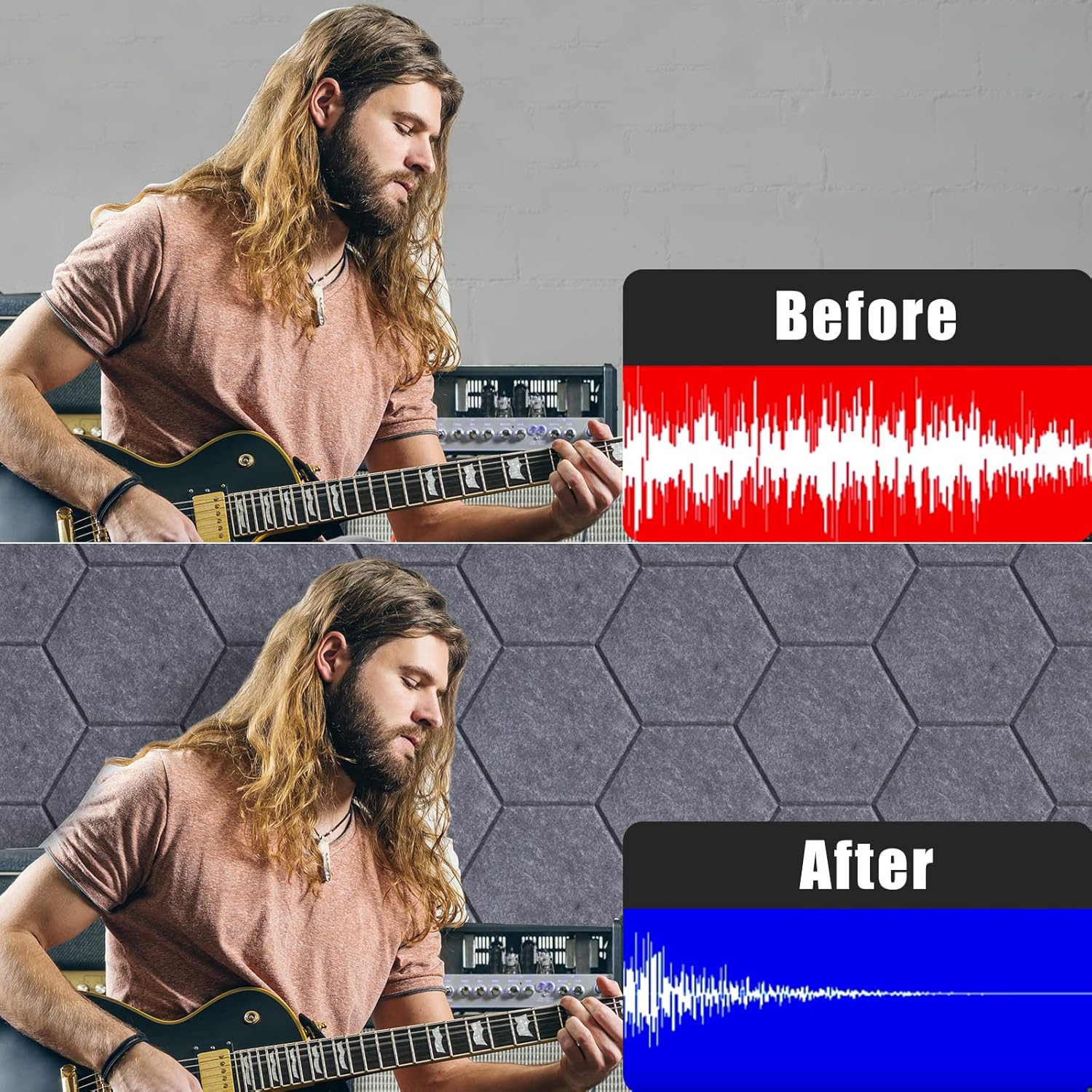12 Pack Self-adhesive Acoustic Panels 12" X 10" X 0.4" - Sound Proof Foam Panels with High Density, Stylish Hexagonal Design, Flame Resistant, Absorb Noise and Eliminate Echoes(Dark Gray)