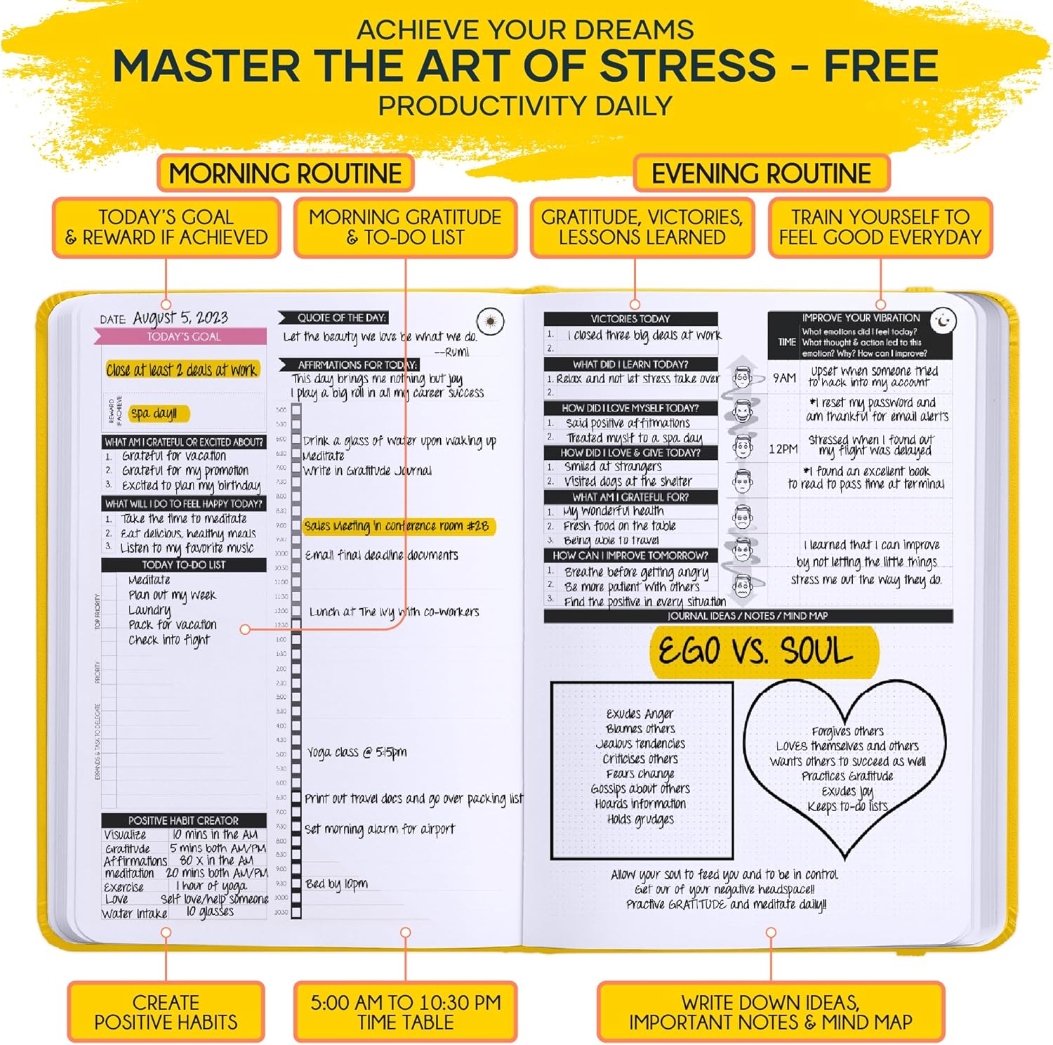 - GUARANTEED HAPPINESS AND GRATITUDE - The daily undated planner empowers you to start each day with gratitude and positivity, setting achievable goals and tracking progress towards success. Discover inspiration from carefully curated quotes and embrace an eco-friendly material. Experience the transformative power of gratitude and happiness as you unlock your potential for a more joyful and fulfilling life.
