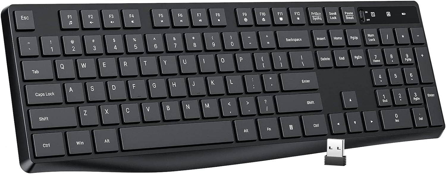 - FULL SIZE EXCELLENT TYPING : Each low profile key of the wireless keyboard allows for increased stability, while optimized key travel provides a comfortable and precise typing experience. The 12 multimedia shortcuts greatly simplify your work and more focus on the task at hand.The numeric keypad is also great for spreadsheets and finance applications.Notes: 12 easy access shortcuts cannot be compatible with Mac.