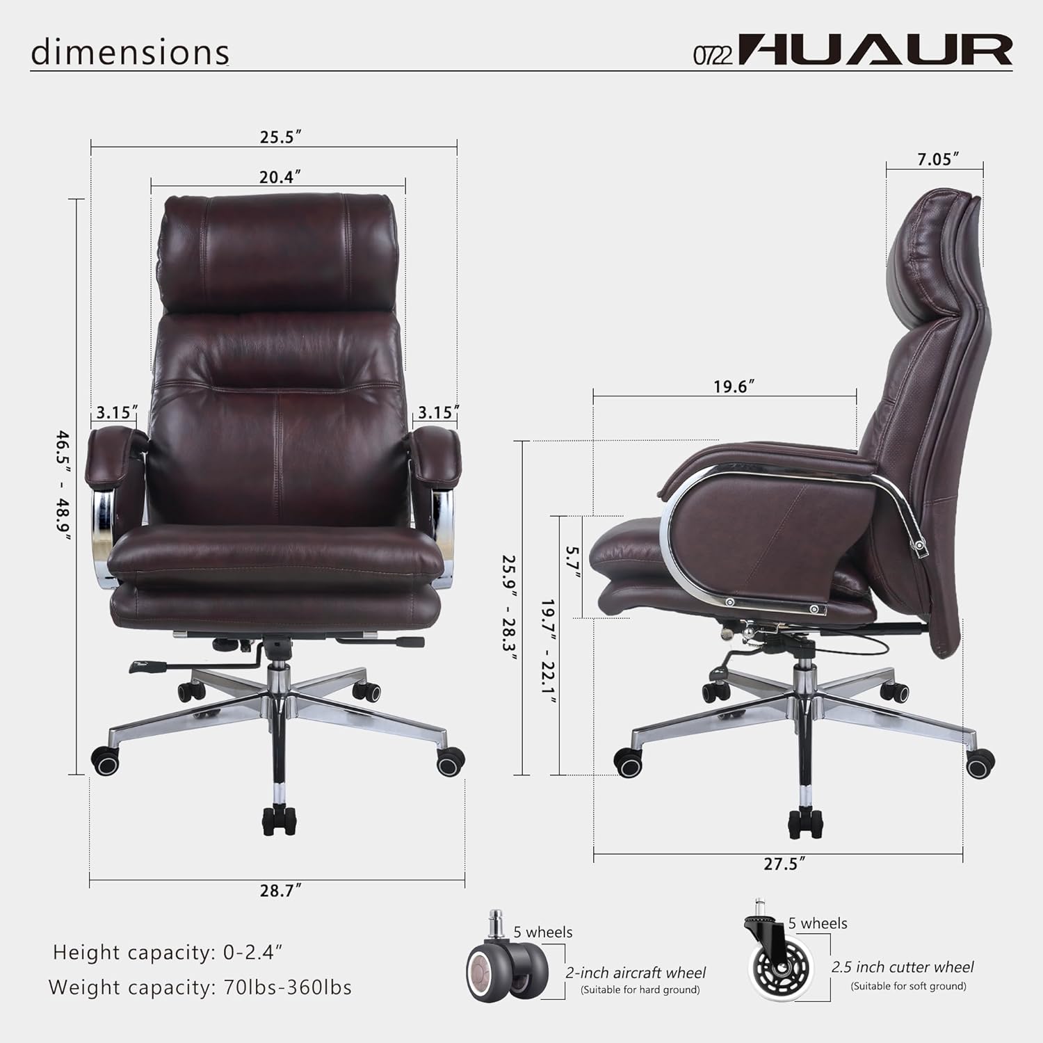 - GENUINE LEATHER FABRIC: The contact surface is 100% cowhide, with clear and natural texture and a special odor. The thickness of genuine leather is 3.5 millimeters. The biggest advantages of natural leather are wear resistance and breathability. The fiber structure of genuine leather can quickly sweat and maintain dryness, If the lifespan of synthetic leather is 36 months, then the lifespan of genuine leather is at least 2-3 times that of synthetic leather, or even longer.
