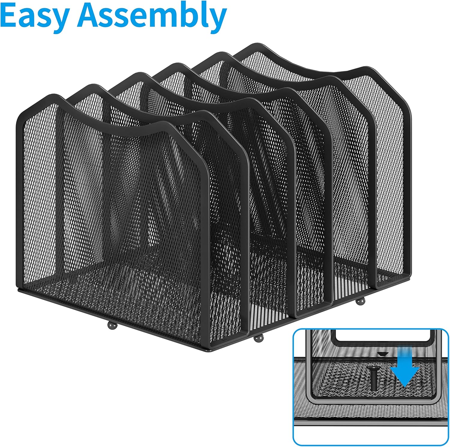 Simple Trending 2 Pack Mesh Desktop File Sorter Organizer, 5-Section Vertical File Folder Stand Bookshelf for Desk Home Office, Black