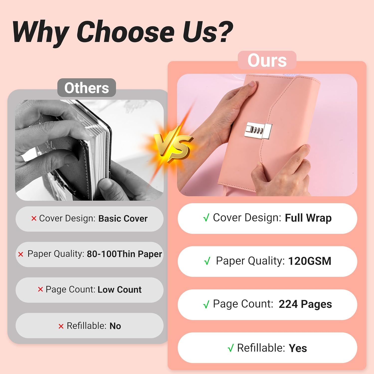 - USE AND SECURITY - Diary lock is easy to set, locked up tight. We have clear instructions to share you how to use the diary with lock.