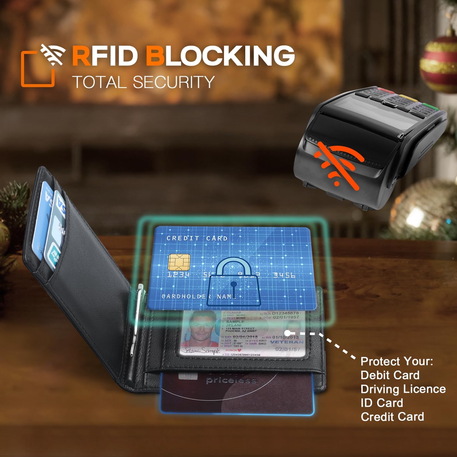 Slim Wallet for Men Genuine Leather RFID Blocking Bifold Minimalist Front Pocket Mens Wallet with Money Clip Thin Gift Box