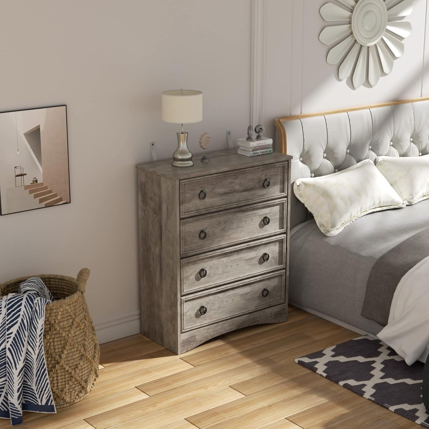 LGHM Modern 4 Drawer Dresser, Dressers for Bedroom, Tall Chest of Drawers Closet Organizers and Storage for Clothes - Easy Pull Handle, Textured Borders Drawers for Living Room, Hallway, Gray