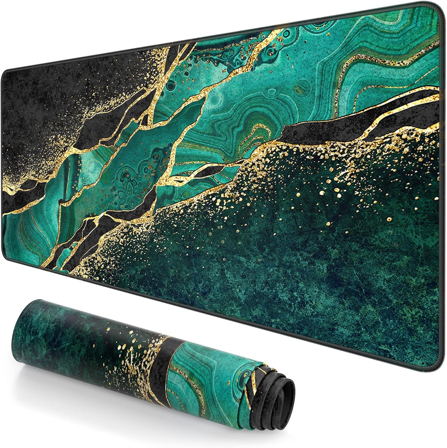 Extended Large Mouse Pad, XXL Gaming Mousepad 31.5 x 15.7 Inch, Big Computer Keyboard Desk Pad, Waterproof Mouse Mat with Stitched Edges and Non-Slip Base for Office Gaming, Green Marble