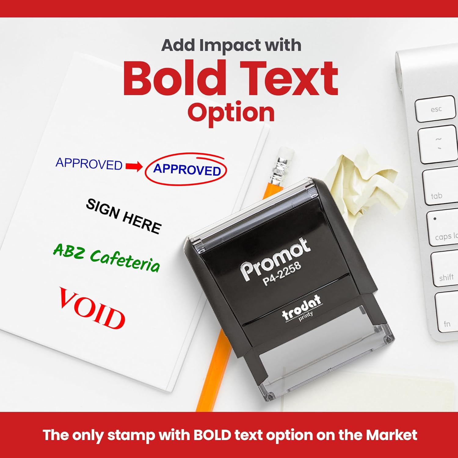 Promot Self Inking 1 Line Custom Stamp - Personalized Name Stamp for Office, Teacher, Address & Business Label Stamp - Choose Font, Ink Color, Pad, Self Inking for Personal & Professional Use - Large