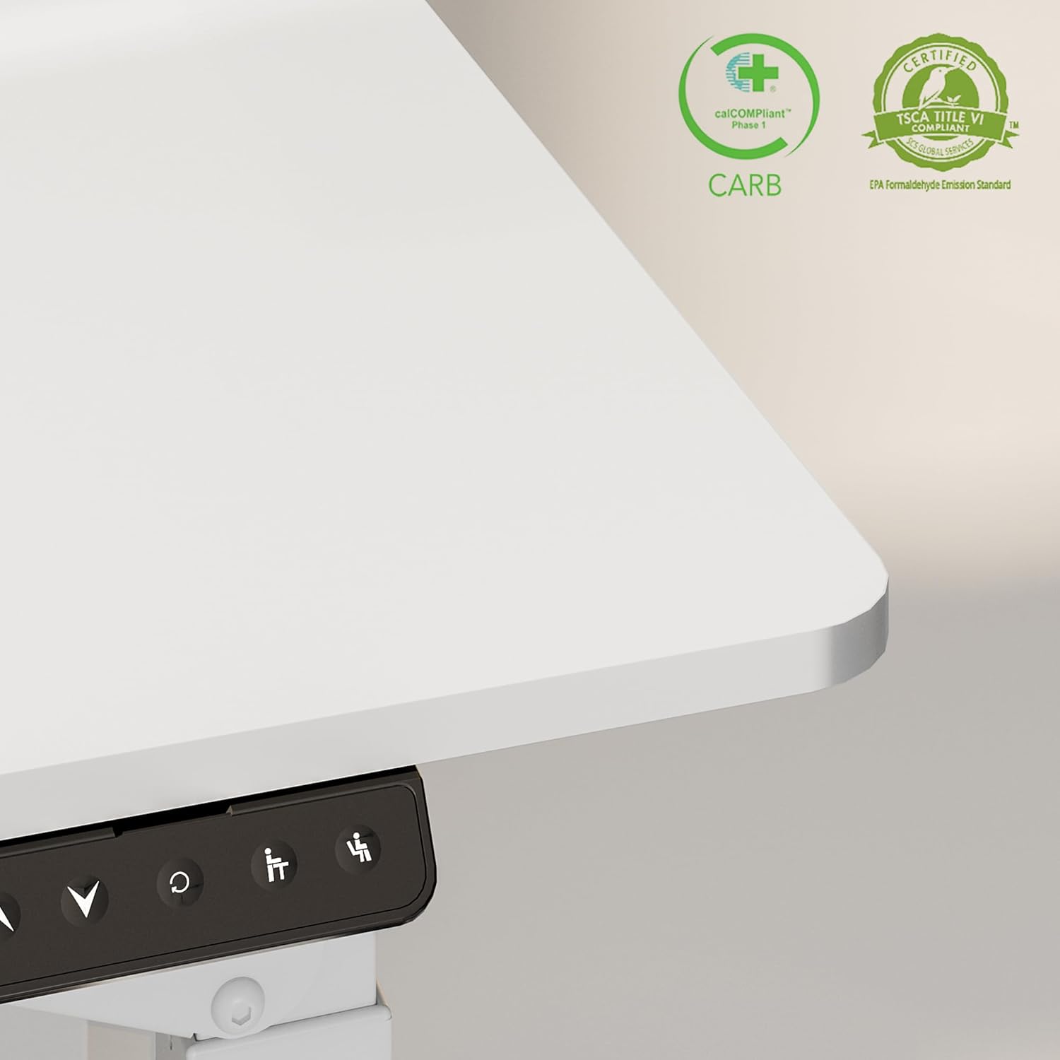 FLEXISPOT 4 Legs Standing Desk 55 x 28 Inch Electric Adjustable Height with Splice Board Home Office Sit Stand Up Desk, White Top + White Frame