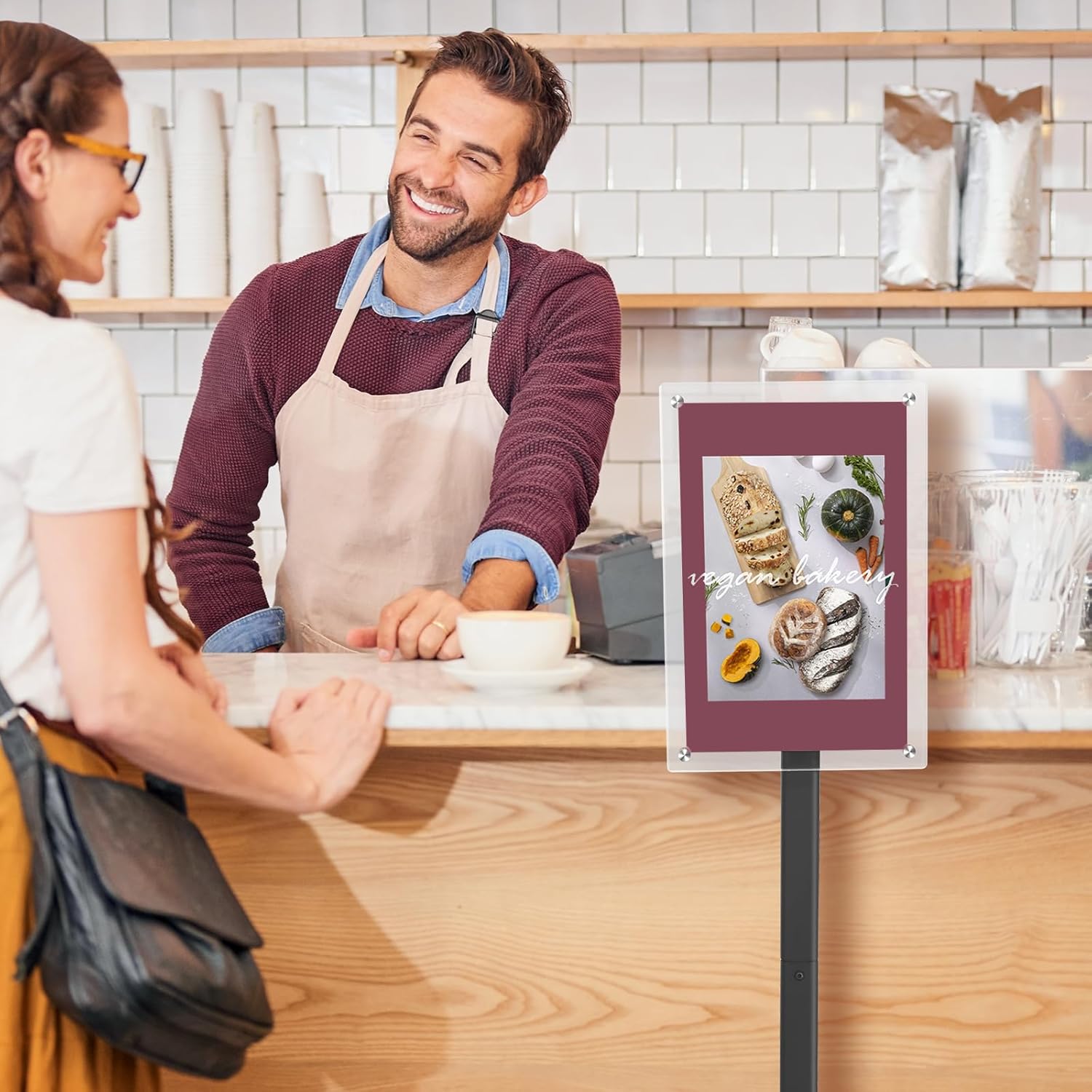 - Heavier Pedestal,More Stable Sign Holder -Floor sign stand with more thick and heavier pedestal to hold poster more stable,total weight 11 lbs ,thicken pole can withstand strong wind.Acrylic frame with heavy base features excellent durability and exquisite look.