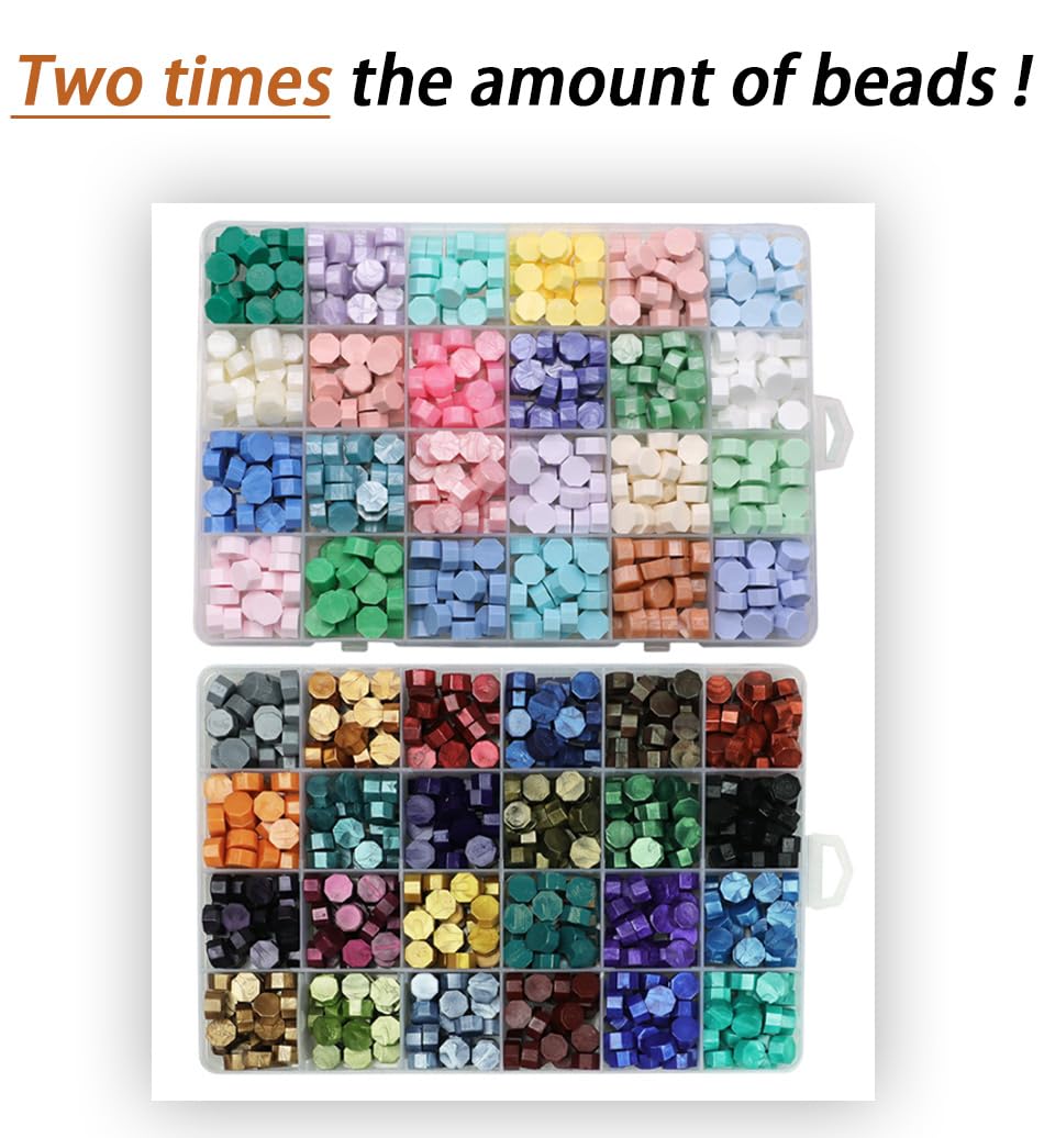 - [48 Color Combinations] This package contains over 1300 wax seal beads in 48 colors, ranging from dark to light. You can choose whatever colors you like and blend them into an endless variety. And with the two metallic pens, one each of gold and silver, you can bring gorgeous effects to the patterns in your seals.