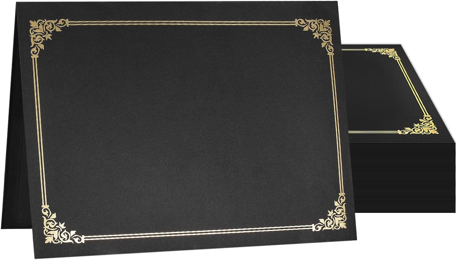 SUNEE Certificate Holders(Black, 50 Packs), Diploma Covers Gold Foil Border, for Letter Size 8.5x11 Certificates, Cardstock, Document Papers