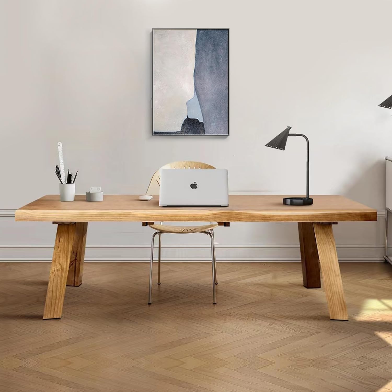 Solid Wood Desk 55 inches, Wood Computer Desk,Home Office Desk Wooden Rustic Writing Desk Modern Simple Design,Ideal for Study, Writing, Dining