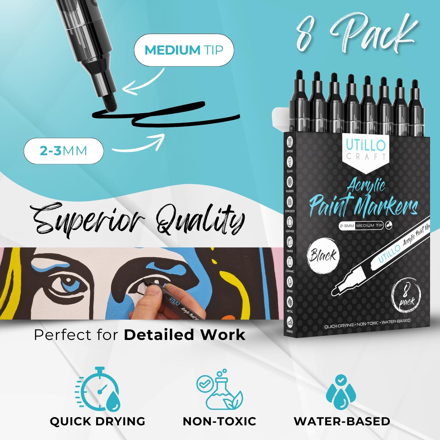 - AMERICAN-OWNED: At Utillo Craft we are quality-obsessed and customer-driven. We firmly believe that our acrylic markers are the highest quality on the market. If you are not 100% satisfied, return them.