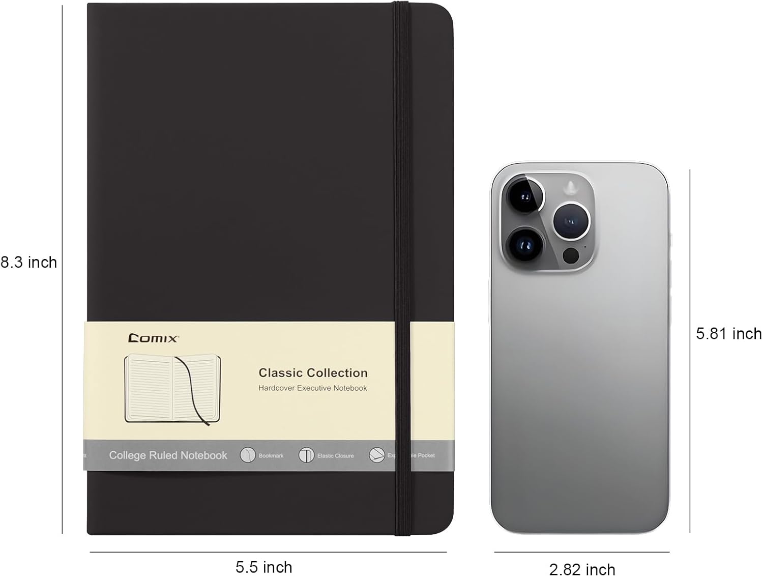 Comix 6 Pack Lined Journal Notebooks for Work, 240 Pages, 5.5"x8.3", Black, Hardcover, A5 Medium College Ruled, Journaling Notebooks for Notes-taking, Fits for Office School Home