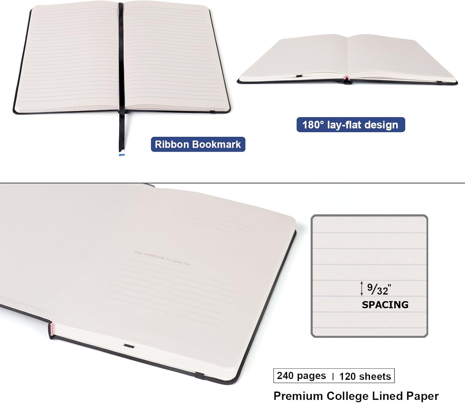 - 【180° Lay-Flat Binding】Lay-flat spine design with reinforced thread-binding ensures seamless writing without mid-page gaps.