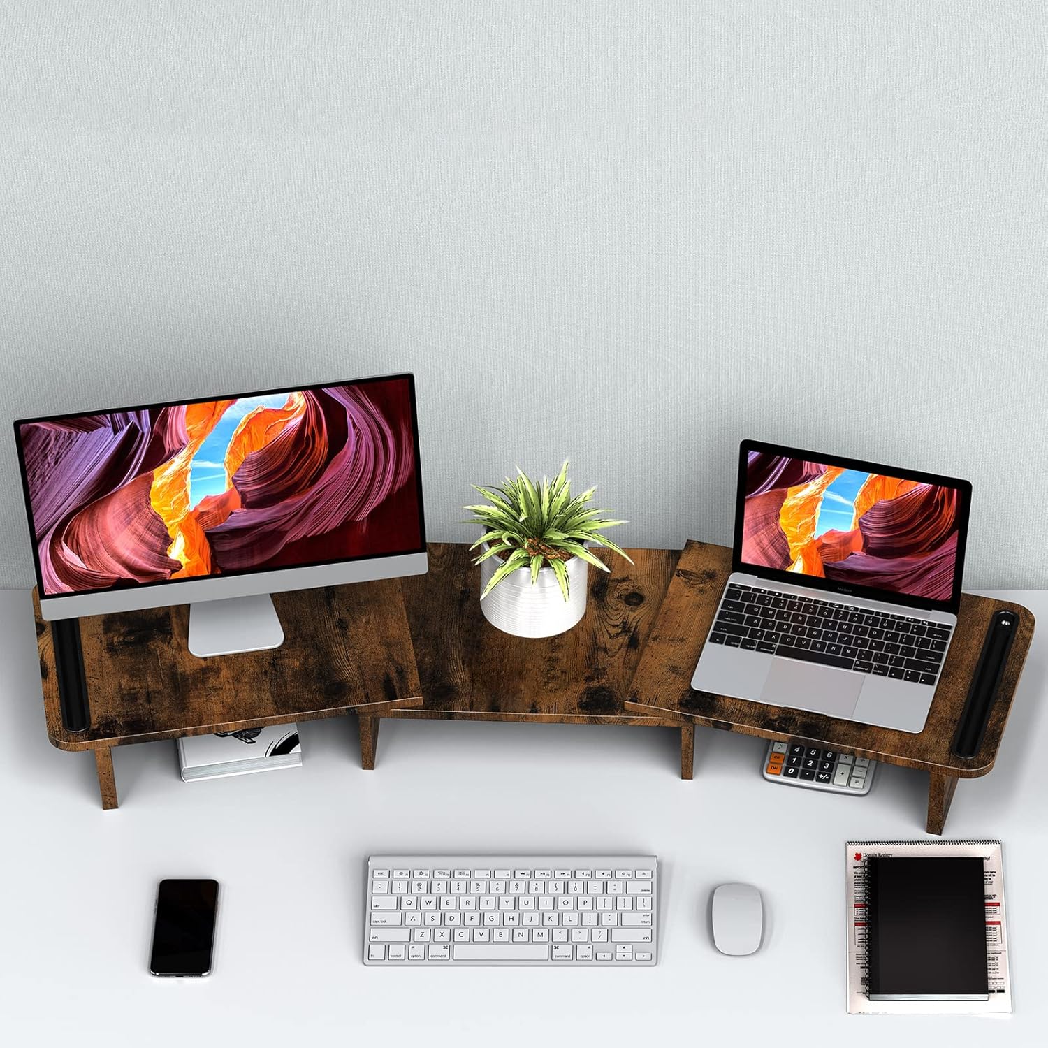 Zimilar Dual Monitor Stand Riser, Monitor Stand with Adjustable Length and Angle, Wood Monitor stand for desk, Monitor Riser for 2 monitors with Storage Space(Rust Brown Large)