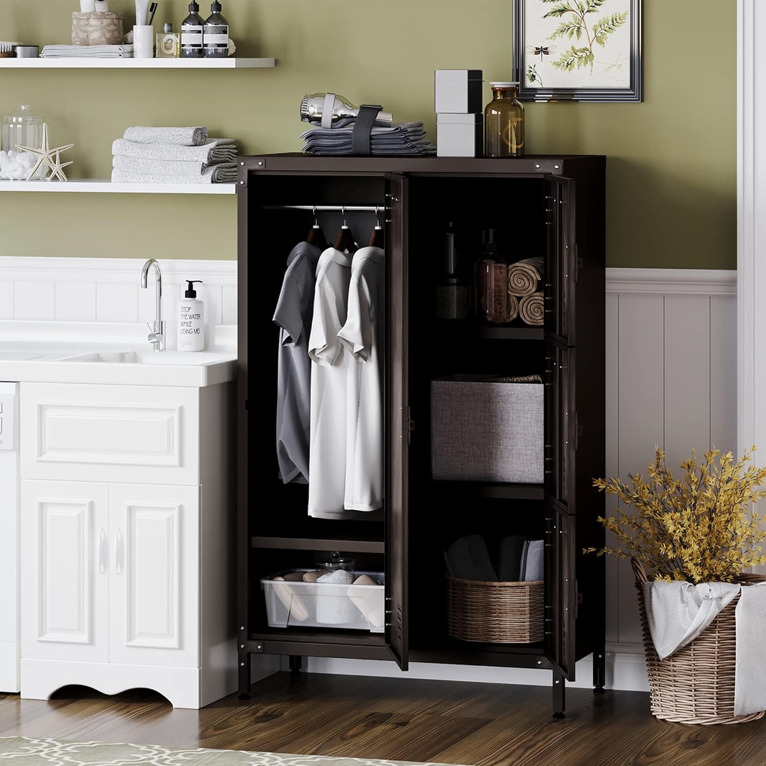 - 【Metal Material】Storage cabinet is made up of full steel ,rugged and not easily deformed, plate adopted environmentally powder coated finish, Moisture proof ,capacity to resist corrosion and rust, Can be used for a long time.