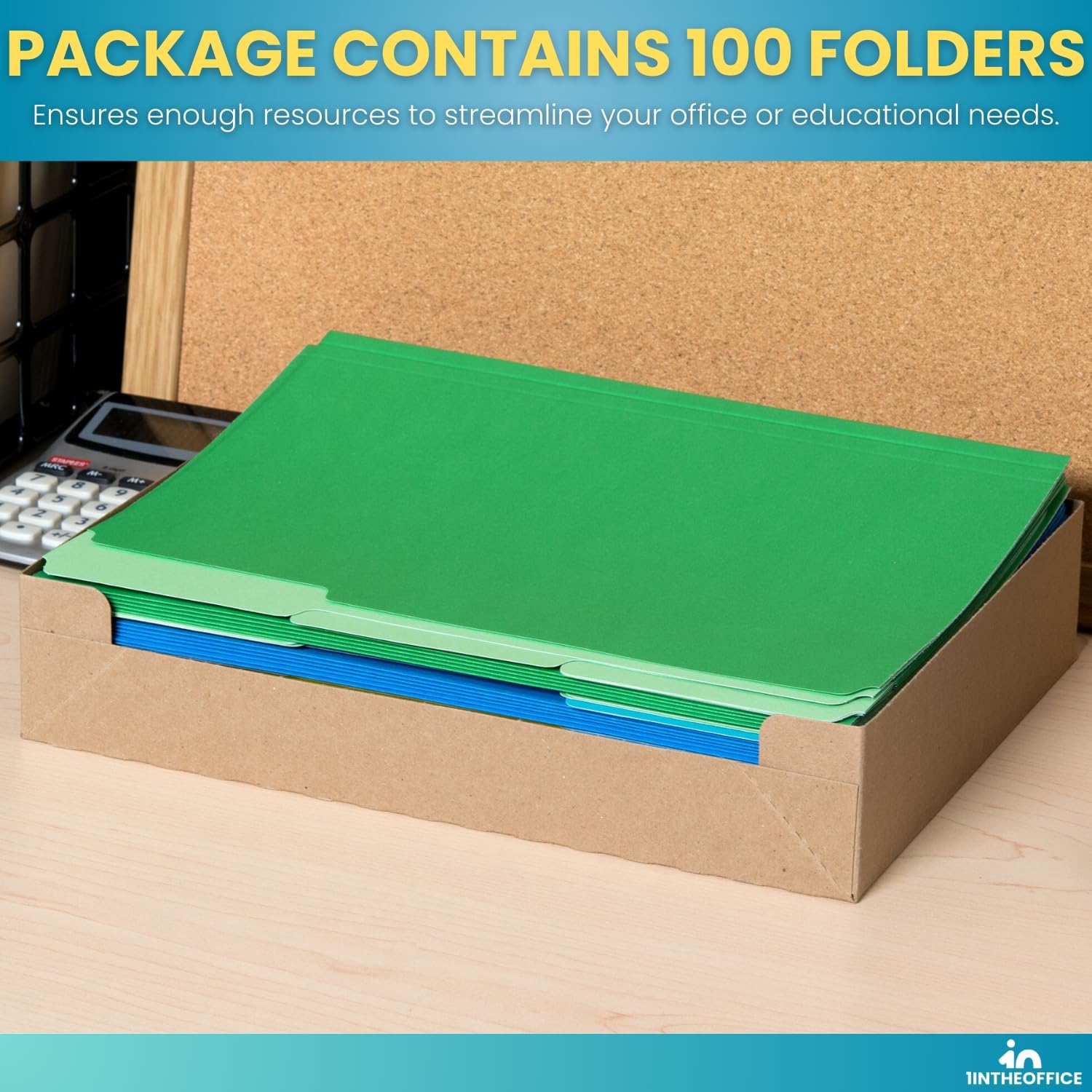 1InTheOffice Colored File Folders Letter Size, 1/3 Cut Tab, Assorted Colors, 100 Pack