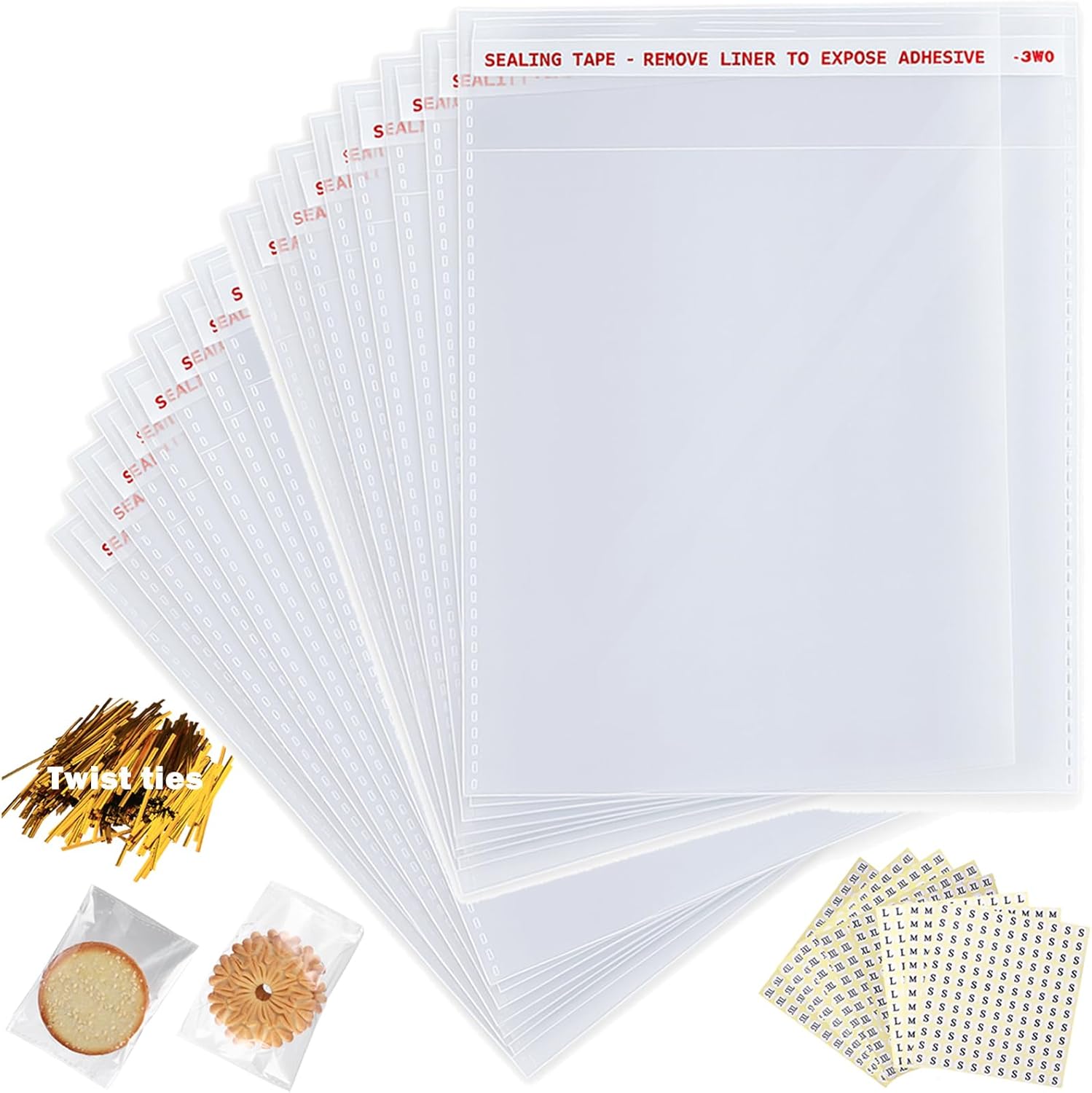 - Value Package: You will get a value package with 200 packs of 10 x 13 inches resealable cellophane bags, a bag of twist ties (800 pieces in total) and S to 5XL size stickers (one sheet each) in bulk quantity. What a great deal!