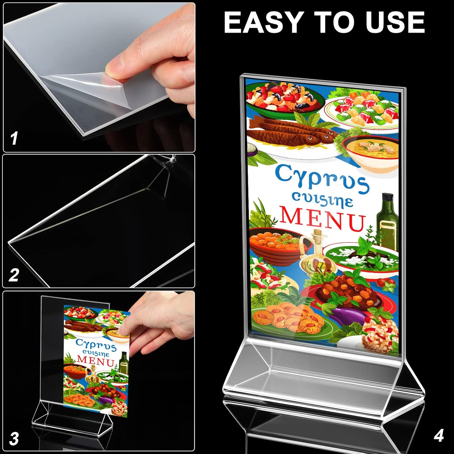 - Portable and Easy to Use: you can easily carry our acrylic sign display stands and place them anywhere you want because they are lightweight and portable; Each sign holder has an opening on its top for easy paper insertion; Just put the card or advertisement into the sign holder, then you can display the information you want