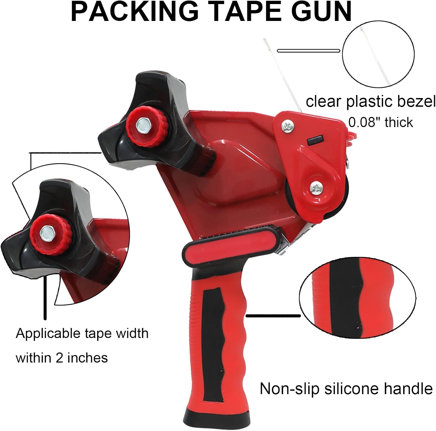 WELSTIK 2 Pack Red Non-Slip Silicone Handle Packing Tape Dispenser Gun 2 Inch -Heavy Duty Sealing Tape Cutter for Shipping, Carton and Box Sealing, Easy Operation