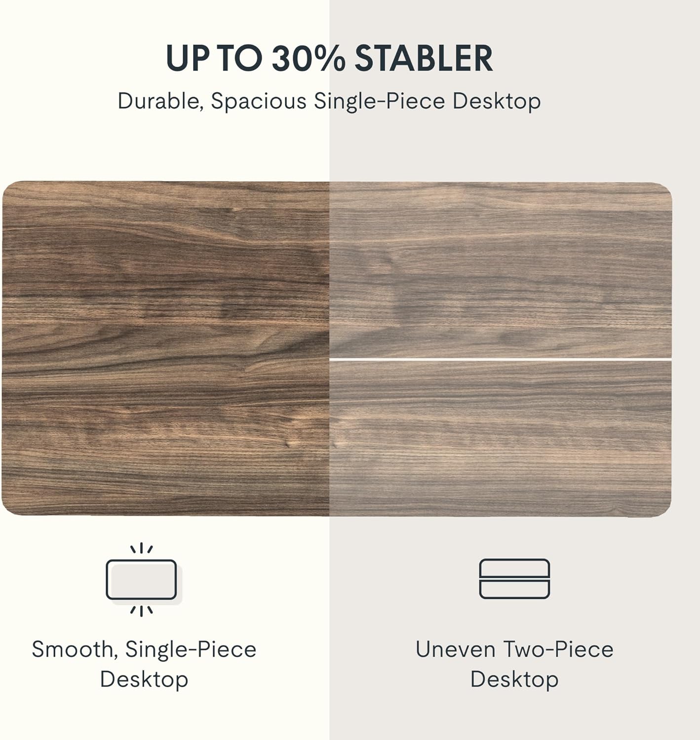 - AMPLE WHOLE-PIECE DESKTOP: With its whole-piece 1” eco-friendly desktop, this standing desk provides plenty of room for your computer setup, documents, and accessories, creating a well-organized and productive work environment. Due to hand measurements, desktop dimensions may vary slightly by 0 to 1”.