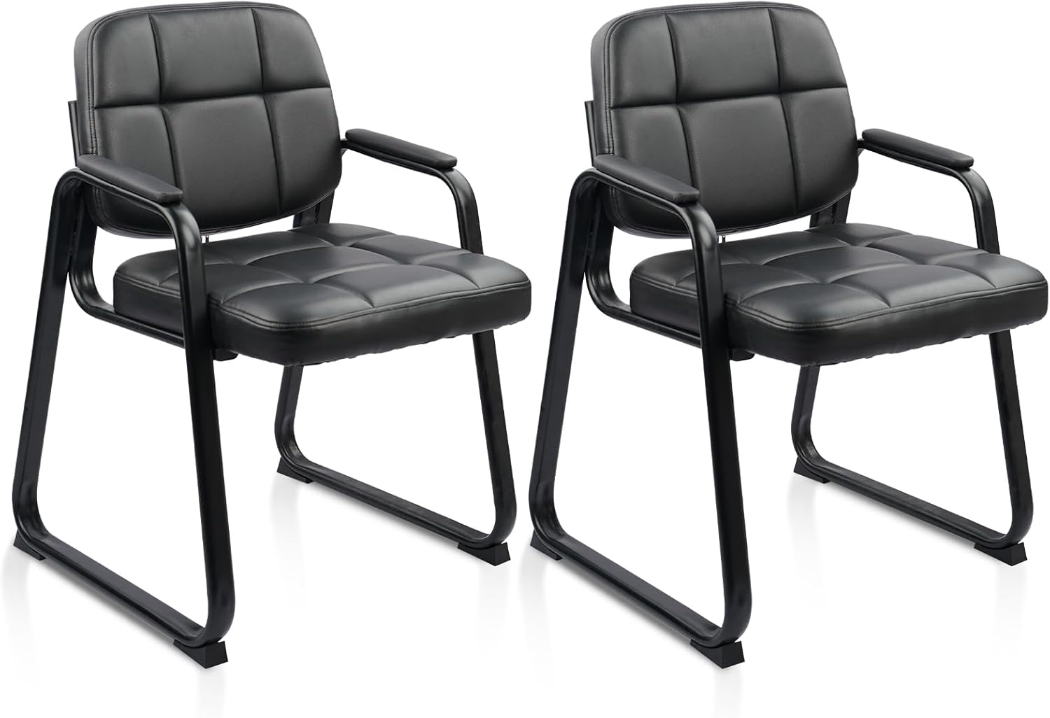 CLATINA Waiting Room Guest Chair with Bonded Leather Padded Arm Rest for Office Reception and Conference Desk Black with Sled Base 2 Pack