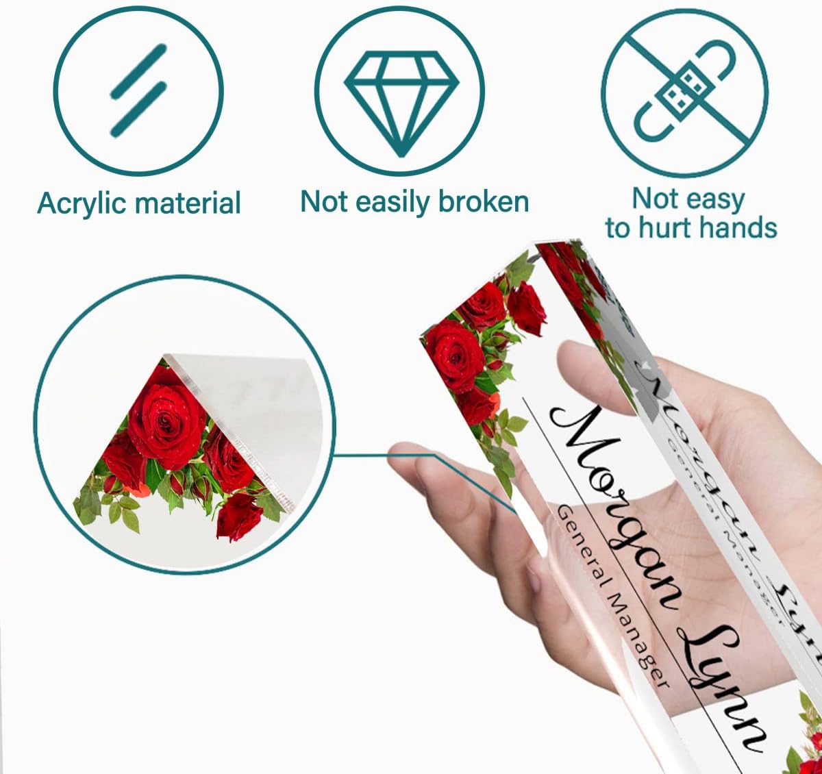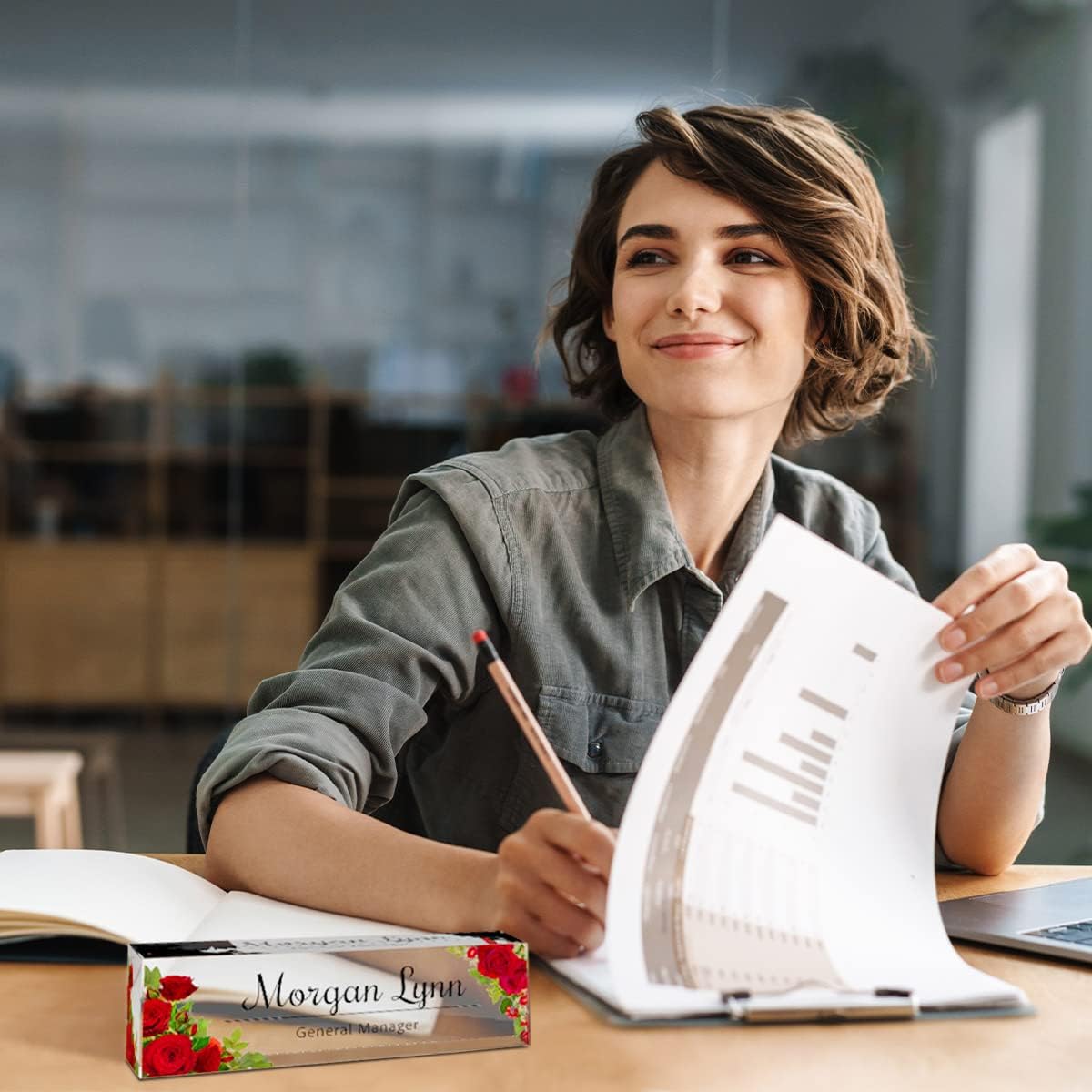 Desk Name Plate Personalized | Office Decor | Name Tags | Desk Decorations for Women Office… (Red Rose)