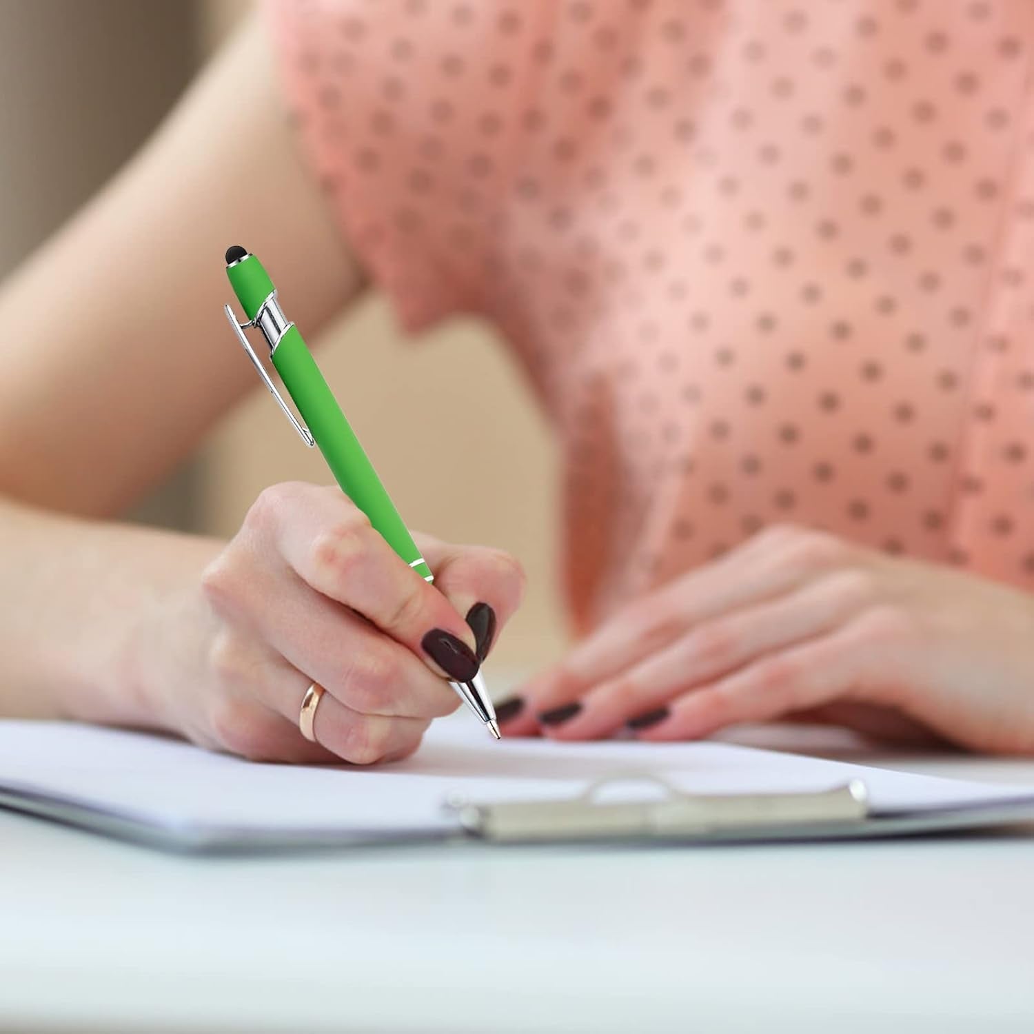 PASISIBICK 12 Pieces Green Ballpoint Pen with Stylus Tip, 2 in 1 Stylus Stylish Pen, Metal Stylus Pen for Touch Screens, Black Ink, 1.0 mm Medium Point.(12 PCS Green)