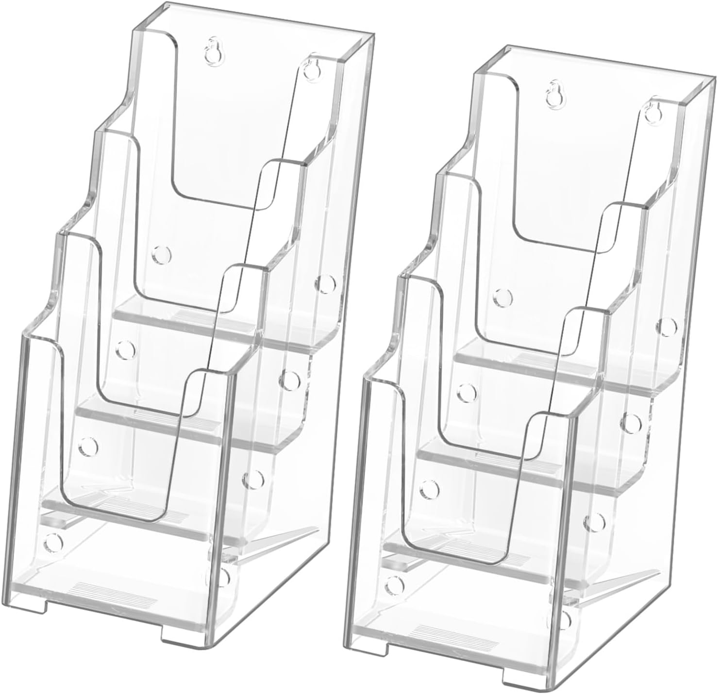 MaxGear Acrylic Brochure Holder, 4 Inch Wide 4 Tier Clear Literature Display Stand, Premium Plastic Pamphlet Holder, Multi Pocket Wall Mount or Countertop Organizer for Office or Home, 2 Pack