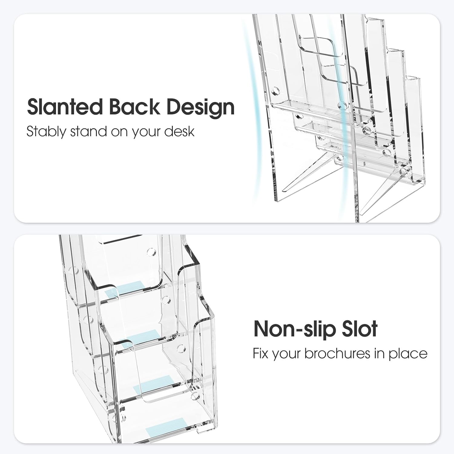 - SELF-STANDING DESIGN: This acrylic pamphlet holder is self-standing, it allows you to maximize display space and keep a large number of materials accessible