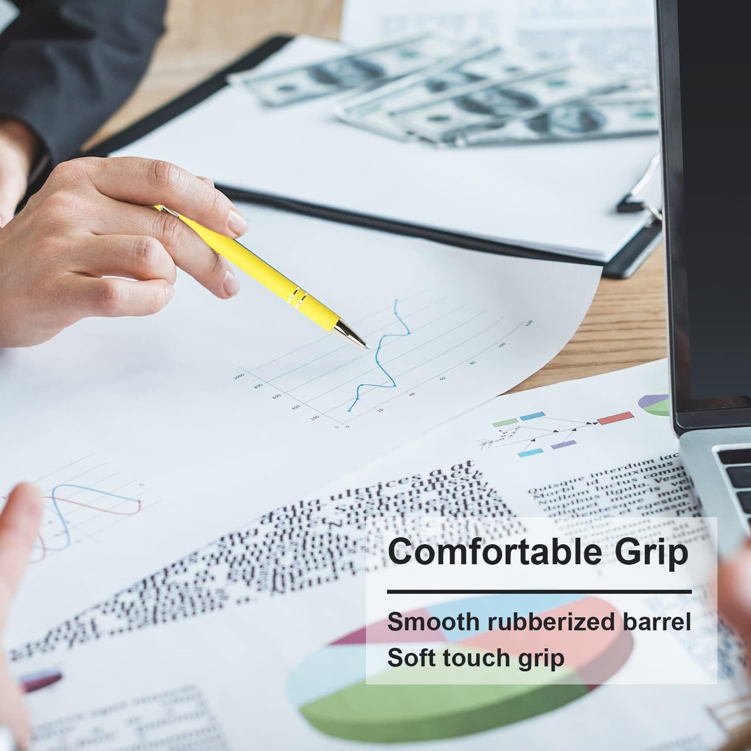 Ballpoint Pen with Stylus Tip, Soft Touch Click Metal Pen, 1.0mm Medium Point, Black Ink, 12 Count(Yellow)