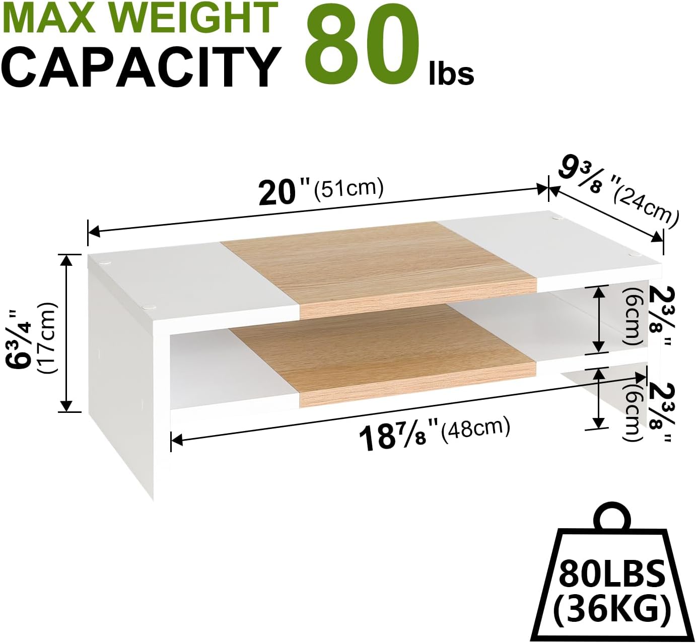 - Better Support to 80lbs: The computer stand is made of eco-friendly thicken MDF wood board, and process optimization to make the stand more beautiful and durable. This monitor stand riser is a good choice for your office, living room, bedroom, and study.