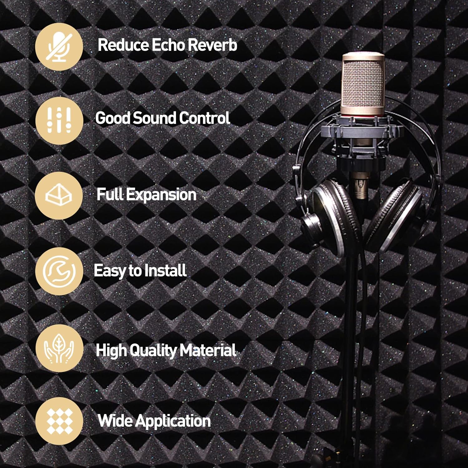 - 【Improve Sound Quality】Auslet acoustic foam help much in improving audio and video quality by absorbing and eliminating unwanted background noise, echoes, flutter echoes, waves, reverb, ect. They are widely used in home or recording studio, office, rehearsal room, home theater, vocal booth, game room, concert hall, control room, dog house, etc.