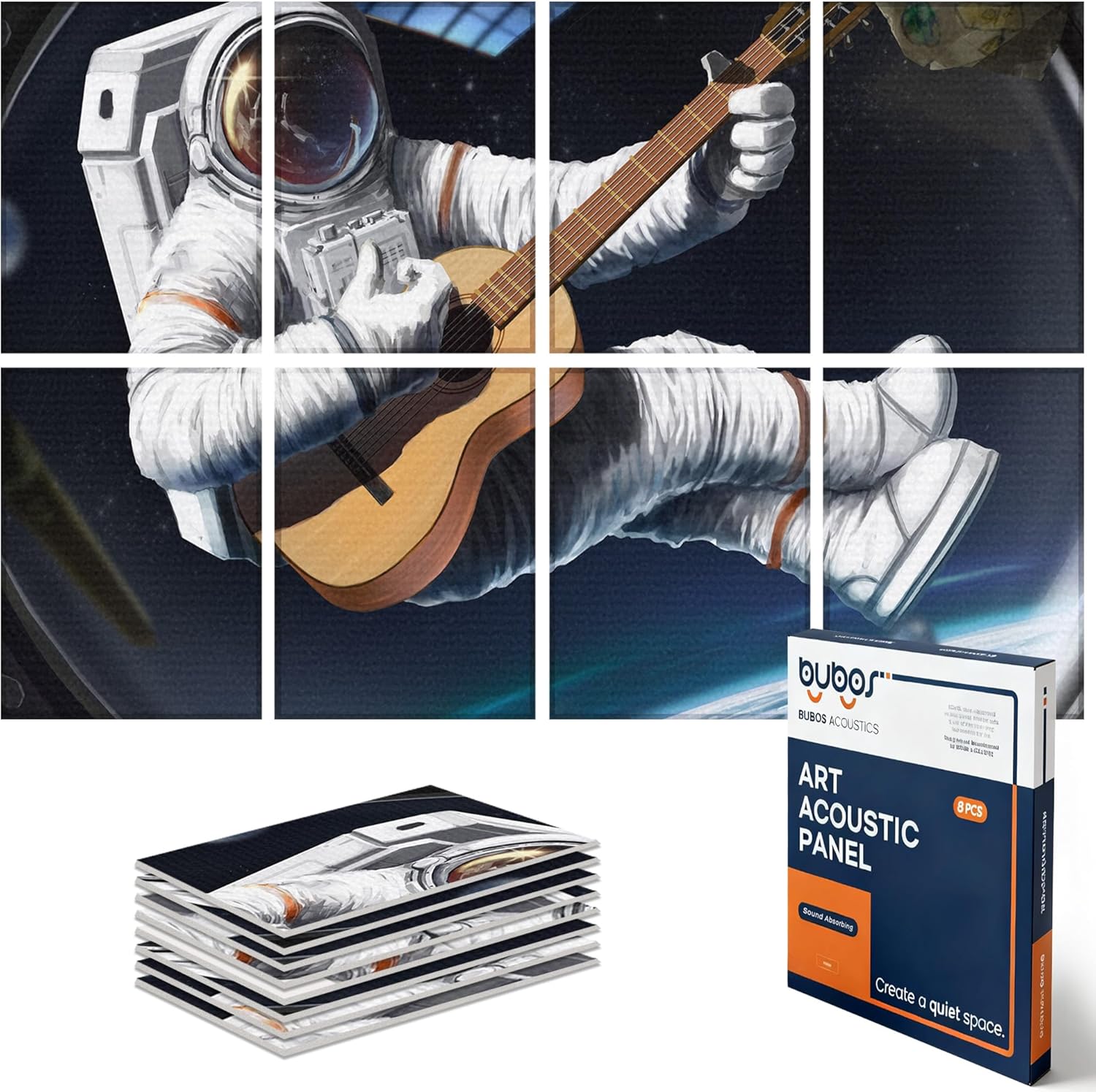 BUBOS 8 Pack Art Acoustic Panels Soundproof Wall Panel,47.2X31.4 Inches Sound Absorbing Panel,Self-adhesive Decorative Acoustical Wall Panels, Acoustic Treatment for Ceiling Home Office(Space Guitar)