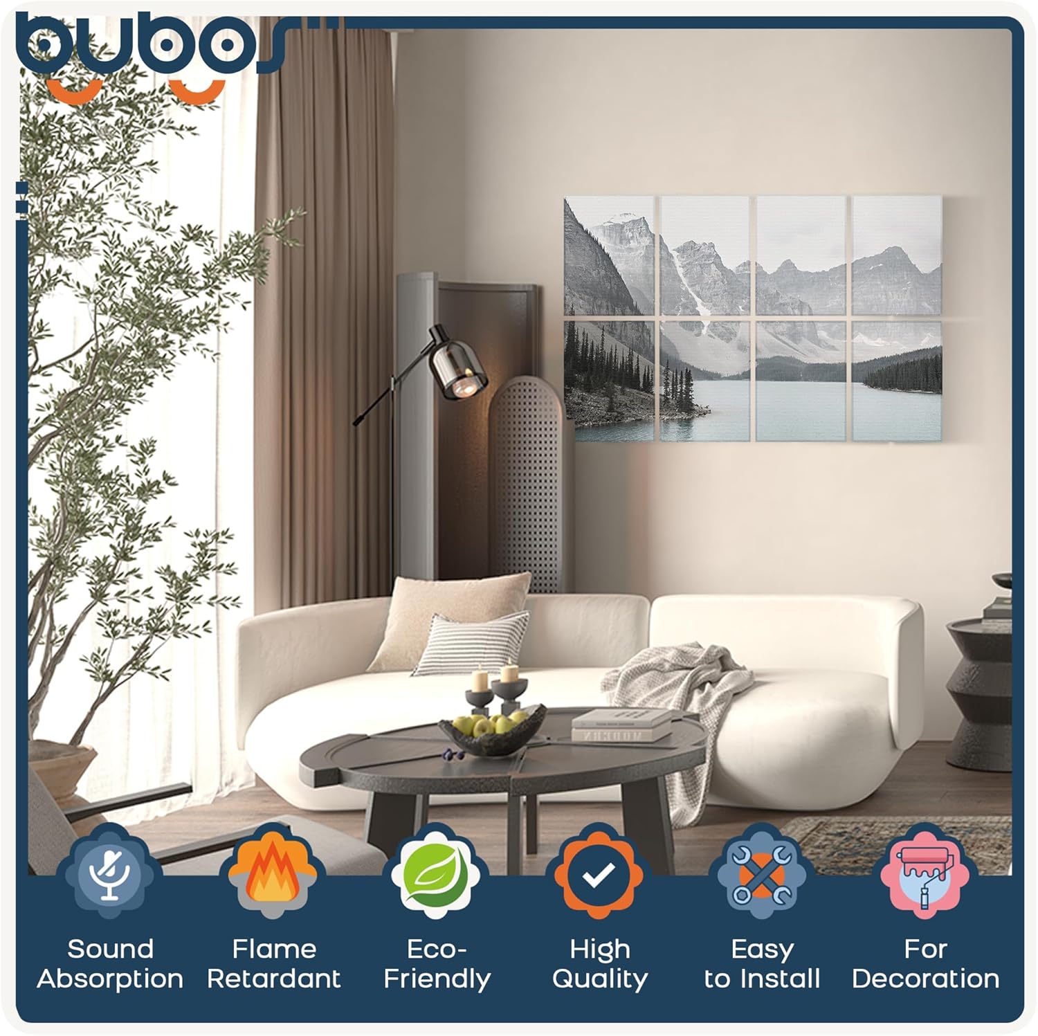 - THEY LOOKS GOOD --- Modern Design with elegant pattern& beveled edge. Get creative and form good-looking decorative patterns with BUBOS Acoustic Panel.Reduce your primary reflections for superior sound experience.
