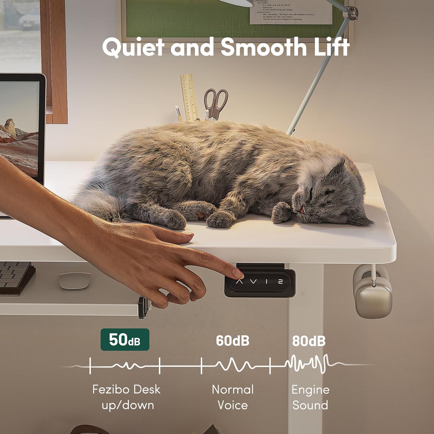 - Electric Height Adjustable Lifting System: FEZIBO standing desk has reliable motor that could support height adjustment between 27.3''-45.5'' (30.3''-48.5'' with detachable lockable casters included) with low noise(under 50 dB) while running