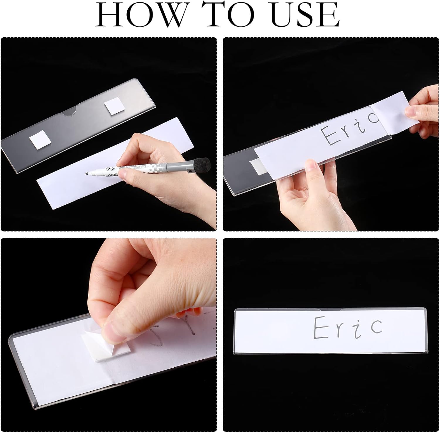 - Assemble and Apply: just stick the adhesive name tags on a clean and flat surface with our self adhesive tapes, which can meet your various needs; You can easily display your advertisements, nameplates and pictures, you can apply them in offices, schools, classrooms, conference rooms, companies, restaurants and homes