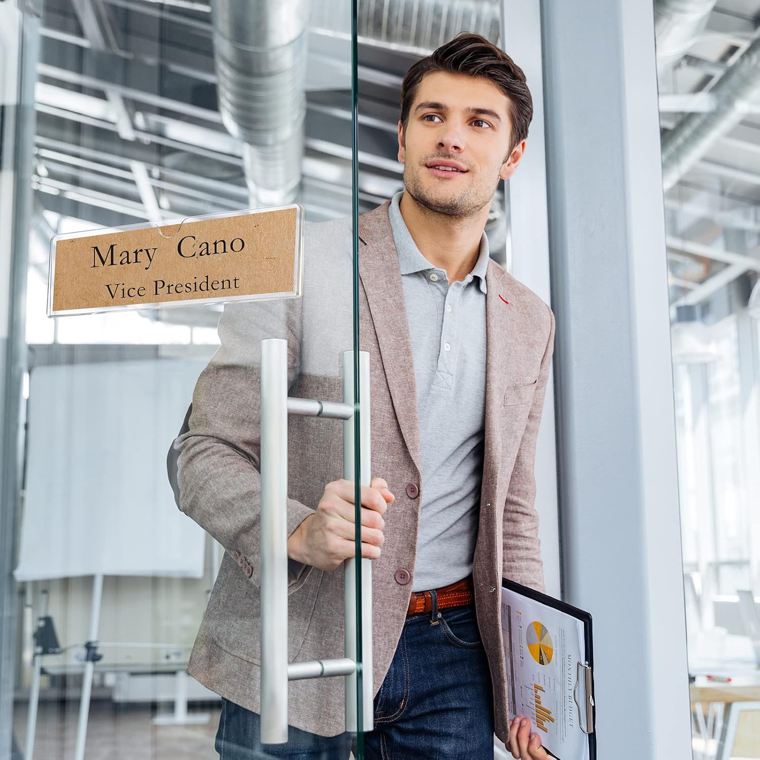 - U Shape Opening Design: this office door name plate provides U shape opening on the top, you can put the paper in and take out without removing the name plate, which can save your time and energy, it can add a modern look to your office, home or business