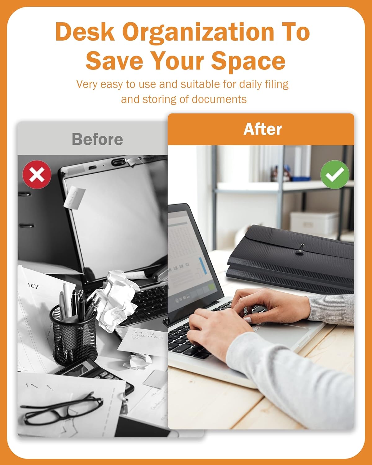 - MULTIFUNCTIONAL APPLICATION : Accordion folders can store invoices, letters, paper, cards, receipt and other documents,Suitable for home, office, school and travel use. In addition, the stylish and simple design is the best gift for friends and family