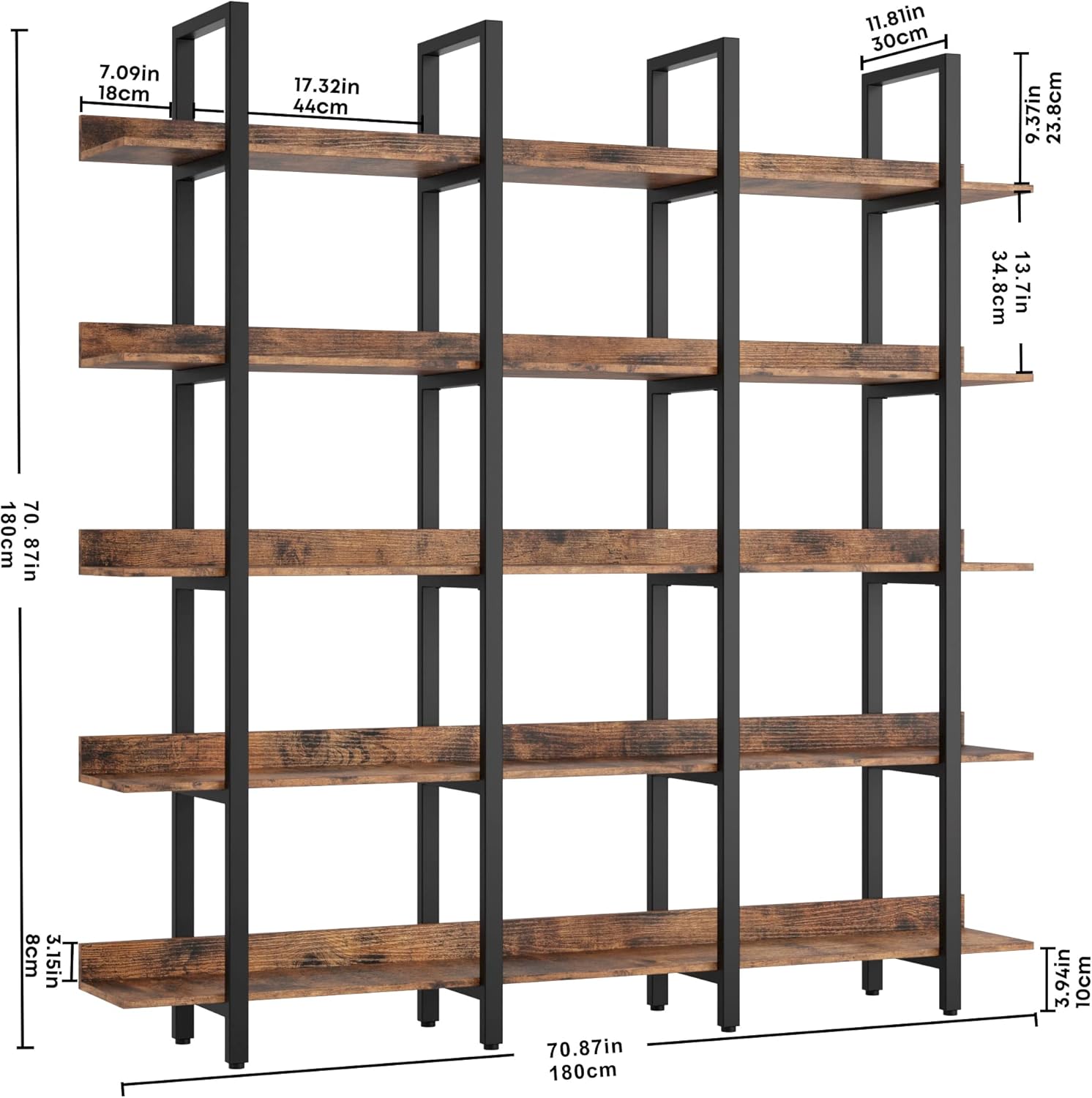 IRONCK Bookcase and Bookshelves Triple Wide 5 Tiers Large Open Shelves, Etagere Bookcases with Back Fence for Home Office Decor, Easy Assembly, Vintage Brown