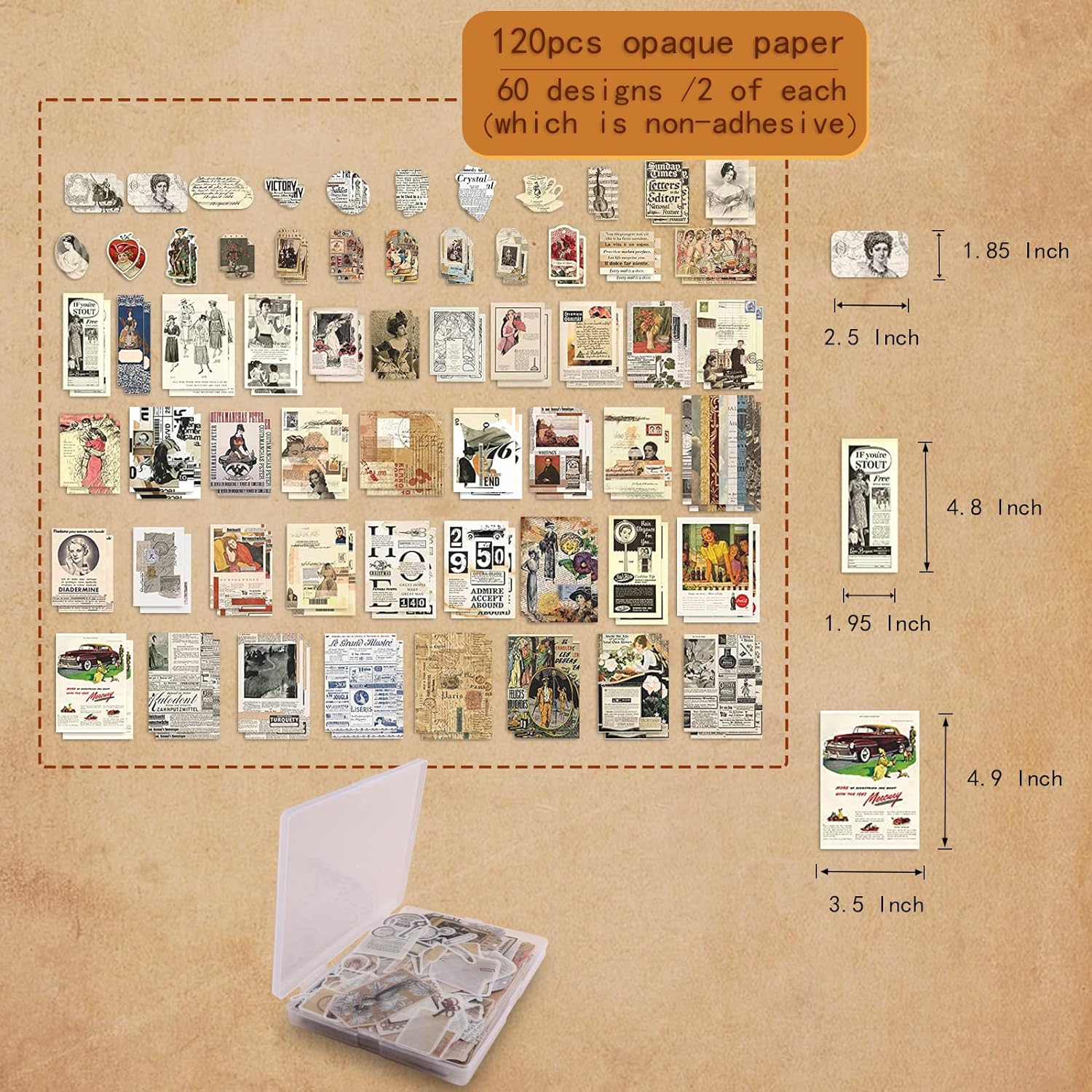 - 【Easy to Use & Store】The journal ephemera kit comes with a metal tweezer to help you peel the vintage sticker from the backing. And you also will get a plastic storage box, which helps you store the stickers easily. These stickers will be a surprise decoration for gift boxes and vintage items.