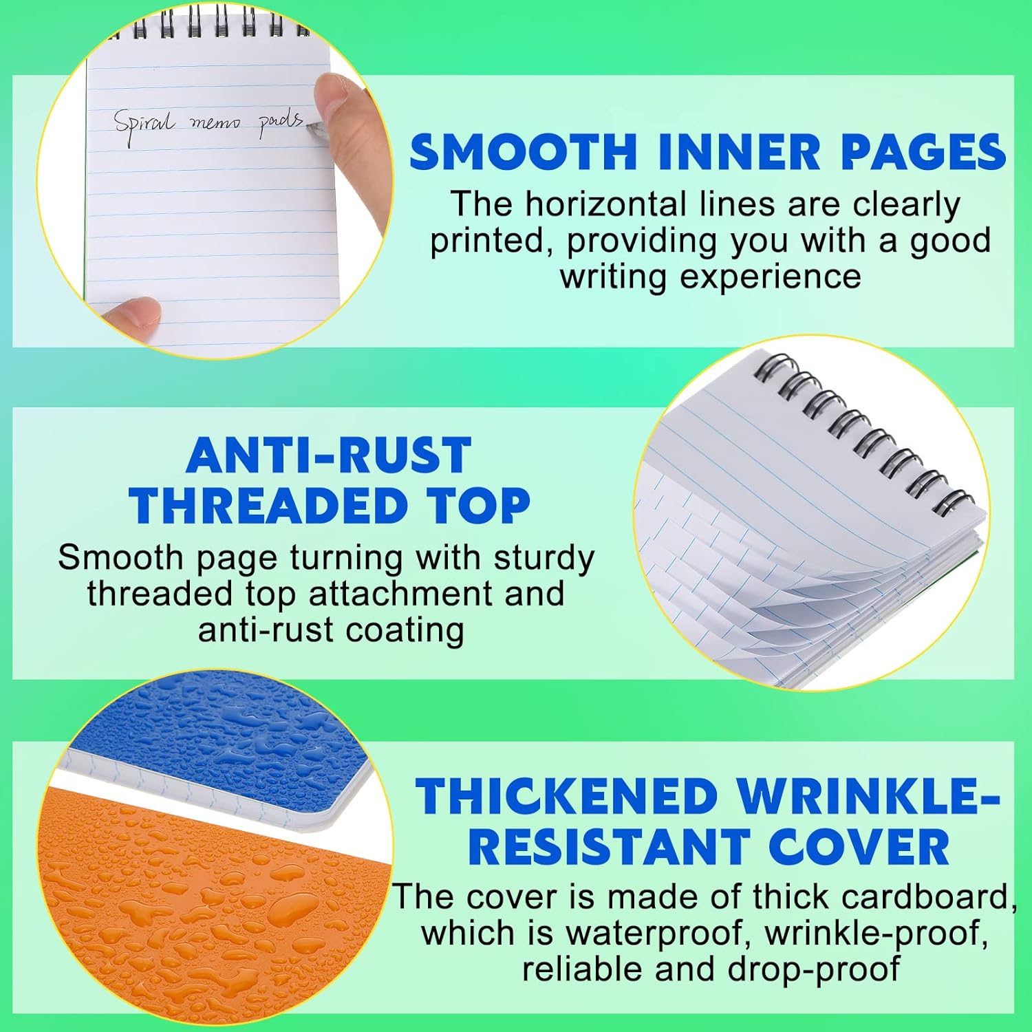 - Paper Note Pads: these small spiral memo notebooks are made of thickened cardboard for the cover, which is waterproof, wrinkle resistant, reliable and anti fall; The inside pages are smooth and flat, with clear horizontal line printing, providing you with a good writing experience