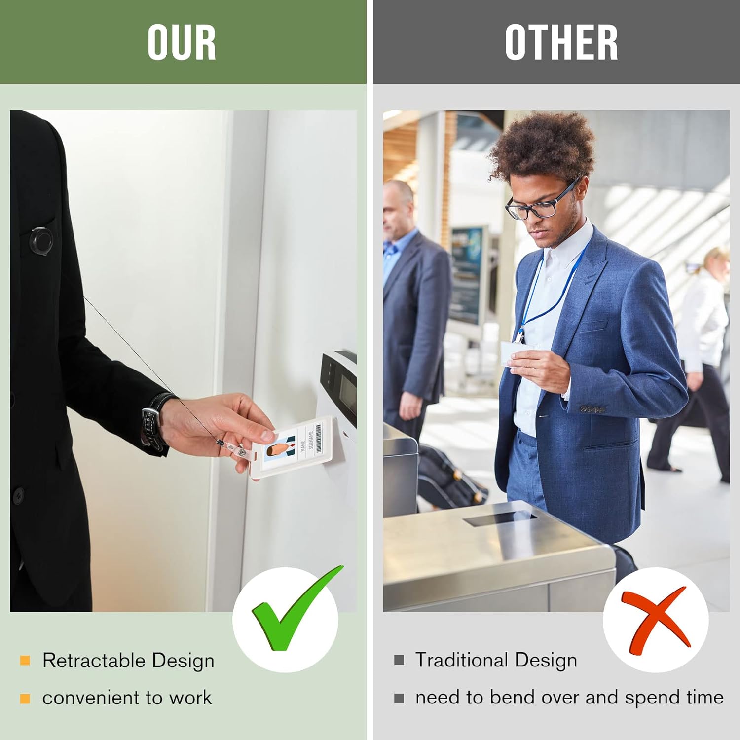 - Retractable Design: Each retractable ID badge holder features a 66 cm (26 in) nylon cord, strong and durable. Easily extend to scan your ID without removing it—fast, convenient, and worry-free for everyday use