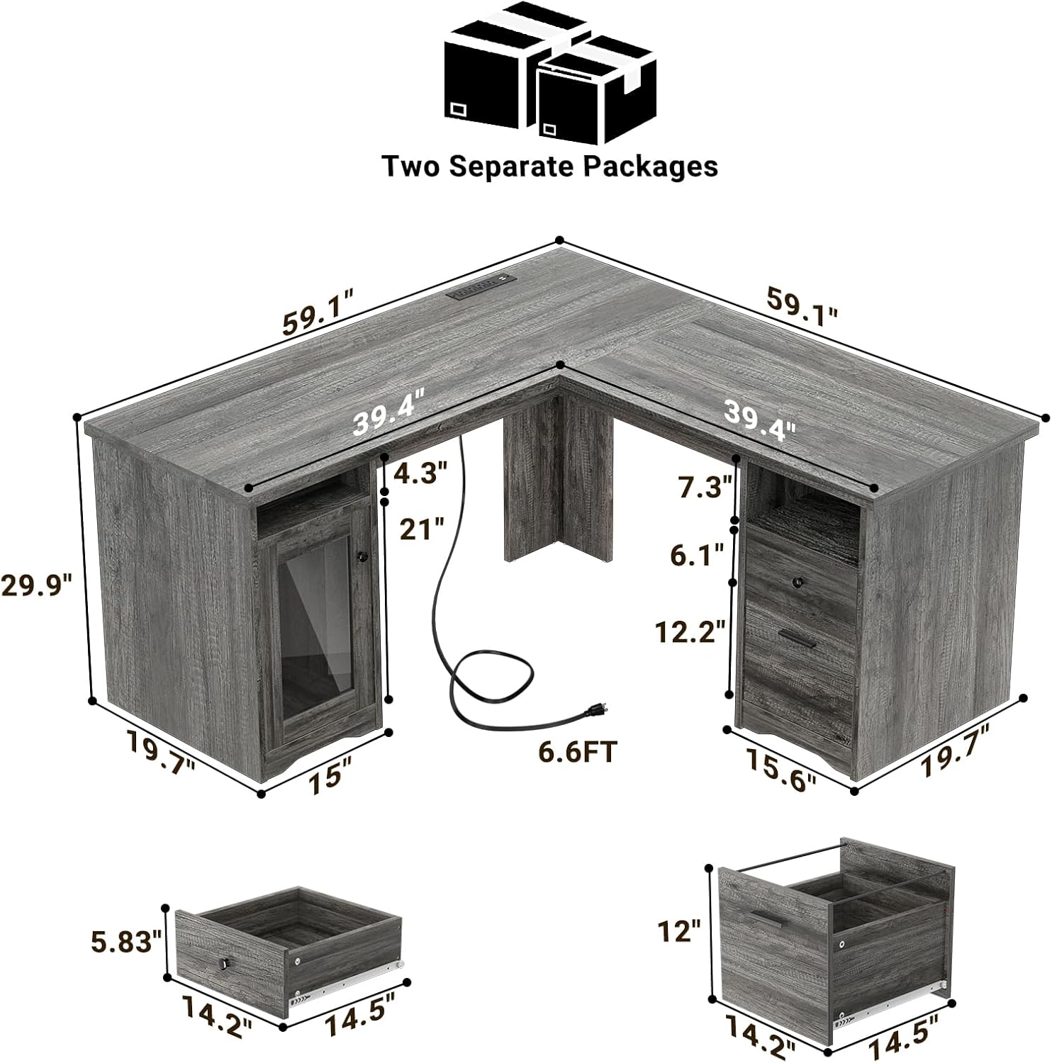- 🔌【 Power Outlets & USB Charging Ports 】The l-shaped desk with drawer is built in 4 power outlets and 2 USB ports. It provides extra power support for your computer, laptop, printer, scanner, phone, headset, gaming gear and other electric equipment with fast charging. You do not need to juggle between plugging your phone, diffuseor fan into your computer any more, this allows for all to be plugged in at once, which provides a great convenience to your life when you are working or playing games.