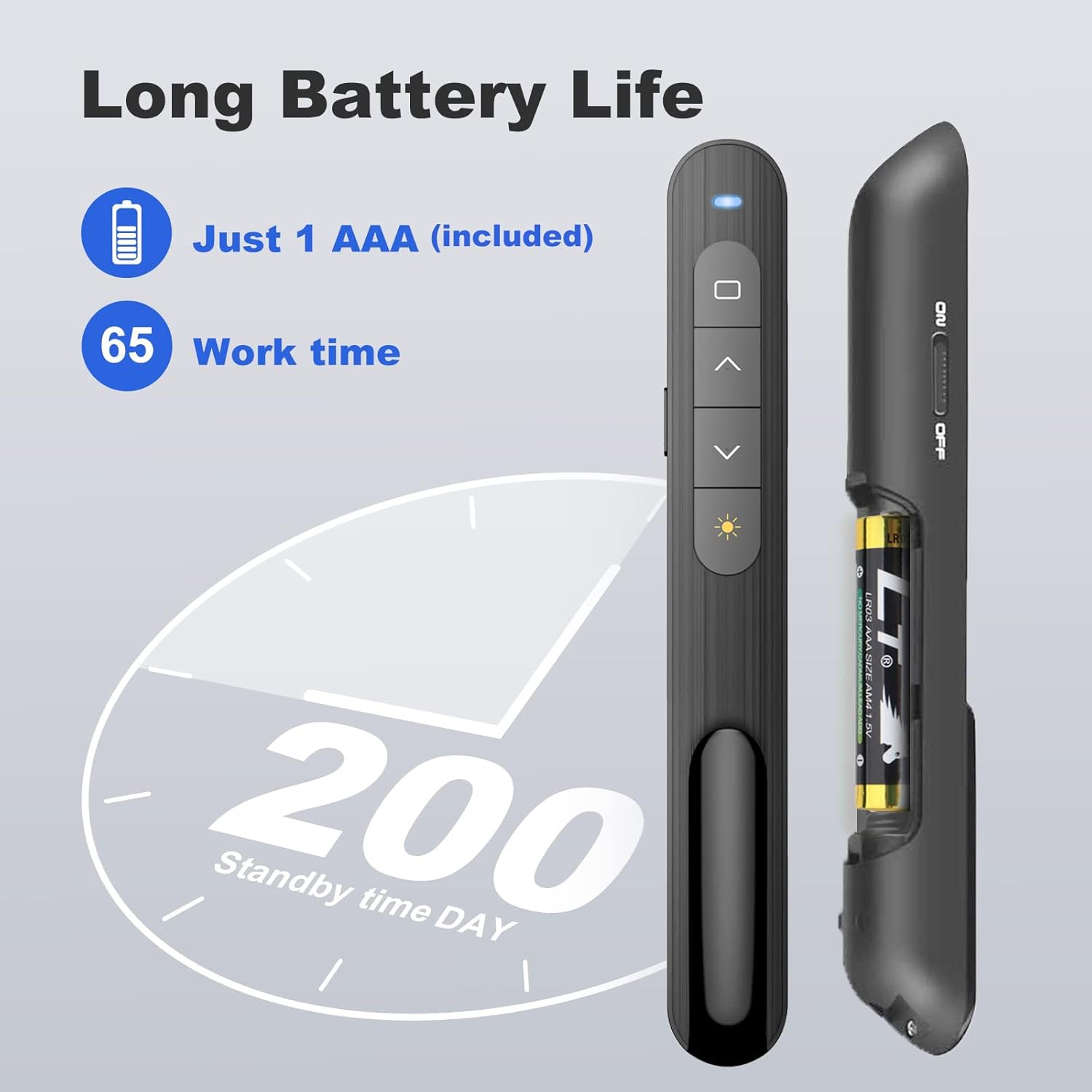 - Impressive 100-Foot Range: Move freely during presentations with a reliable wireless range of up to 100 feet. The bright red light pointer stands out clearly against most backgrounds, helping you highlight key points with precision.