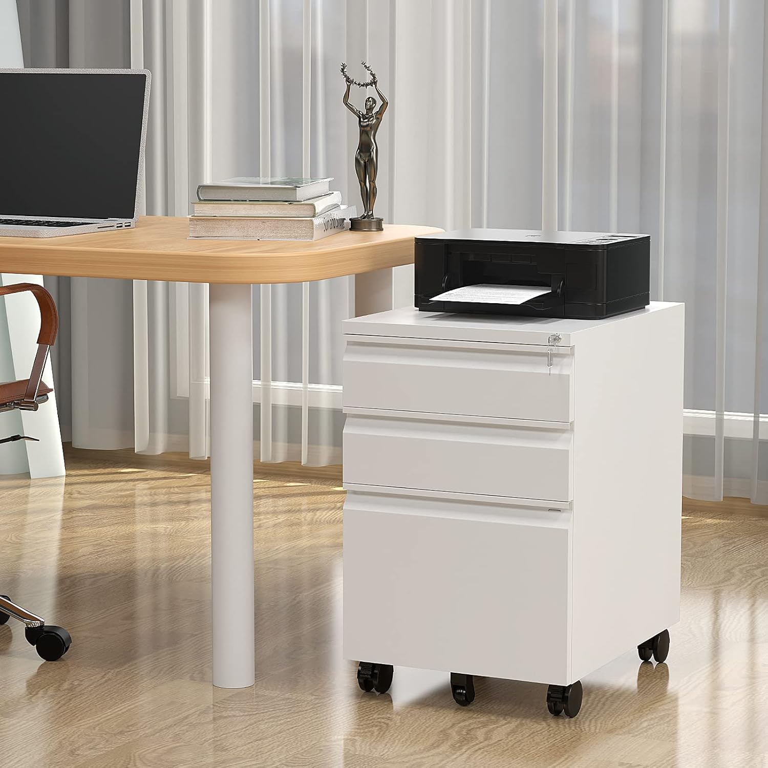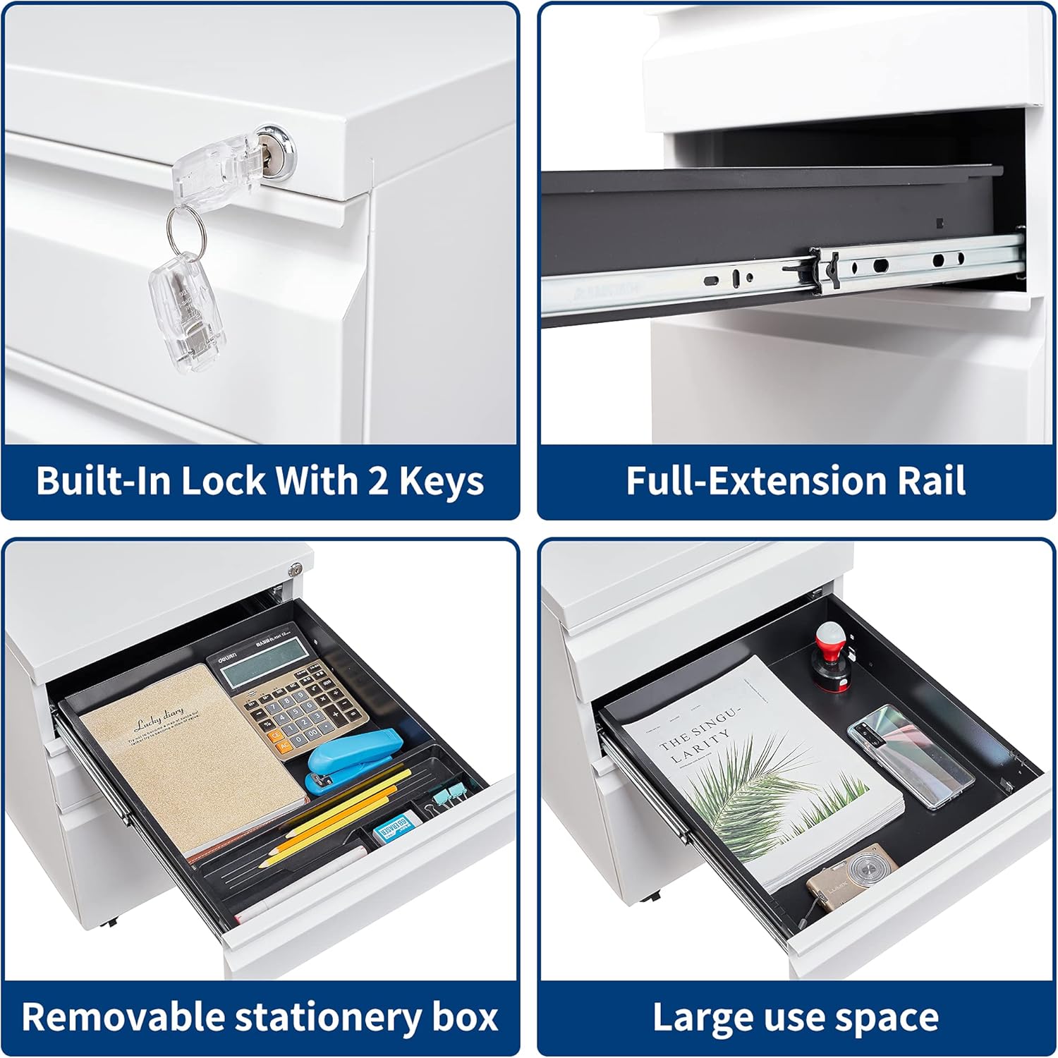 - Optimize your work space: The file cabinet adopts the structure of 3 drawers, 2+1 space combination. Small and large file cabinets can be organized and stored, making your office space more comfortable. Chain mechanism: