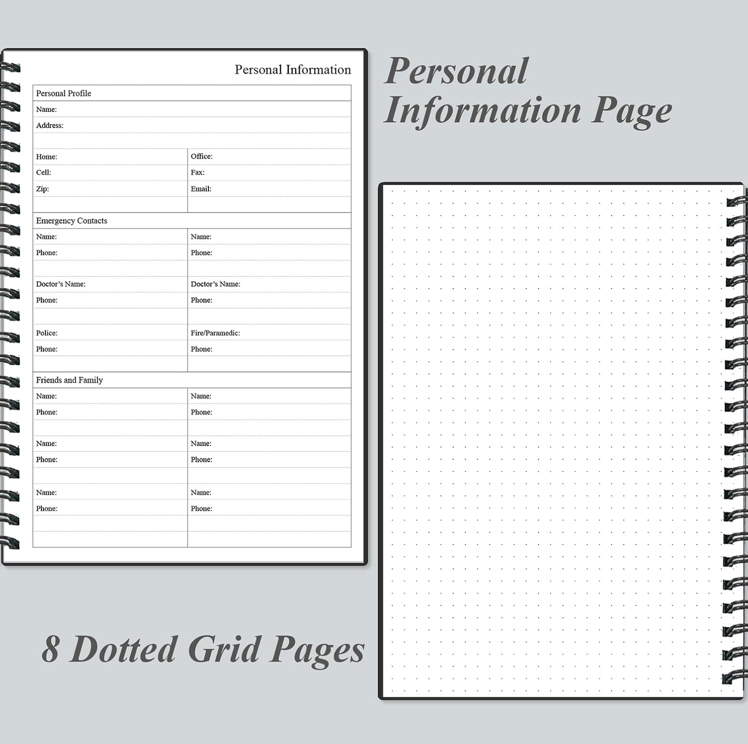 - A5 SIZE - This undated daily organizer size of 8.5 x 5.8 inch, perfect size to fit in your bag.1 quick reference page, contact pages, important dates page, and 75sheet (150 page) daily plan & notes,8 dotted grid pages, Undated appointment planner makes it easy for you to start the planner at any time.