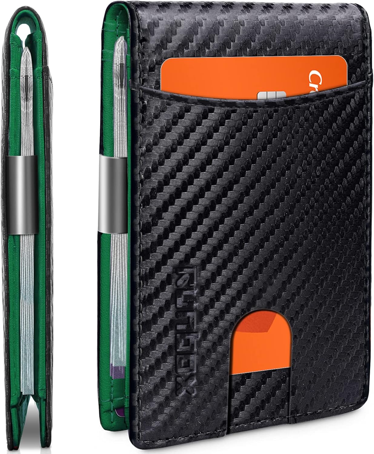 RUNBOX Money Clip Slim Wallets for Men RFID Blocking 11 Card Holder Minimalist Small Leather Bifold Men's Front Pocket Wallet Gift Box
