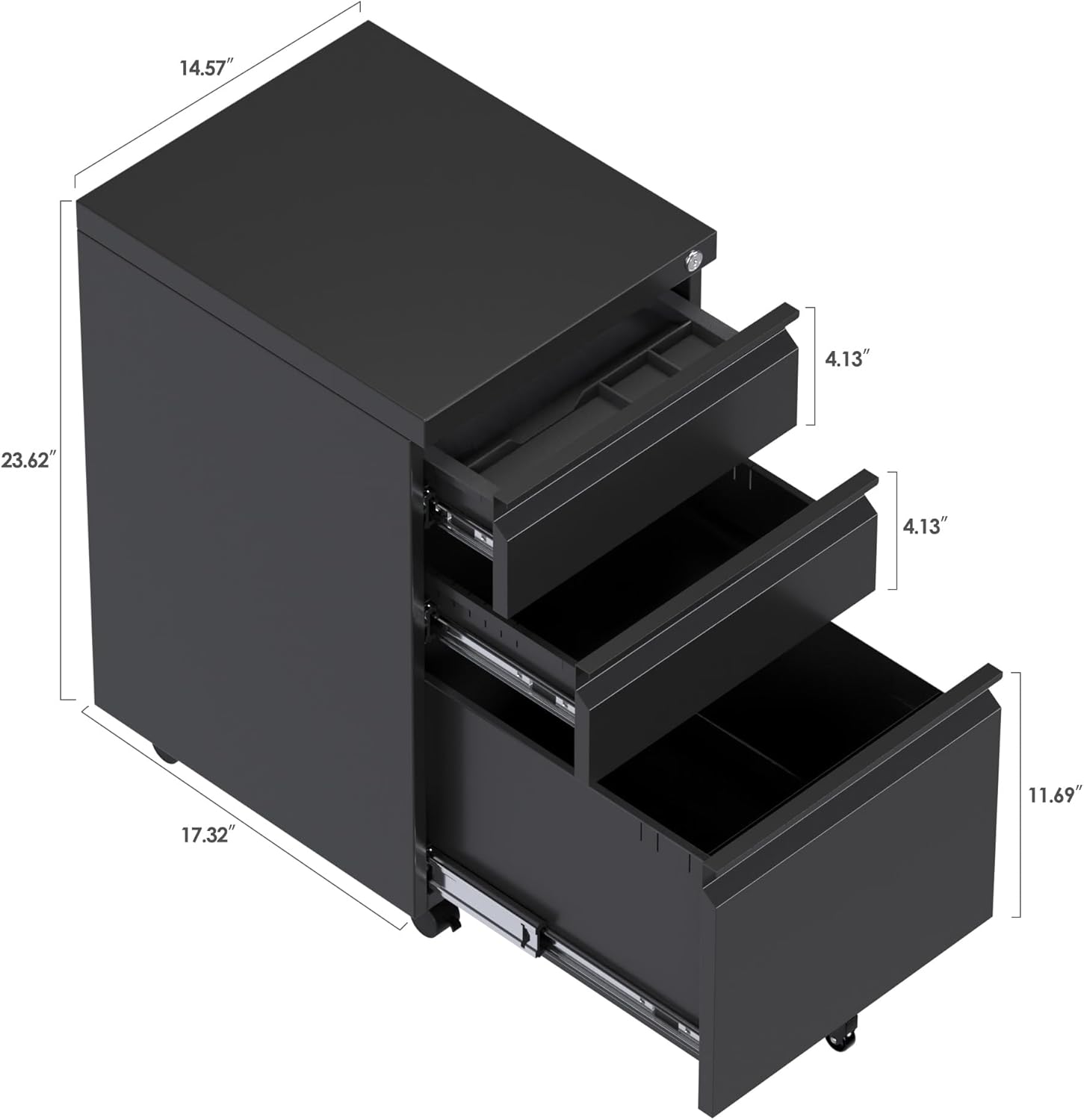 - Lockable Secure Storage - Metal file cabinet under desk has a middle control lock, one lock can lock all drawers, and each lock has two keys, in case you lose one. With its locking design, you can rest assured that your files and personal information are protected from prying eyes.